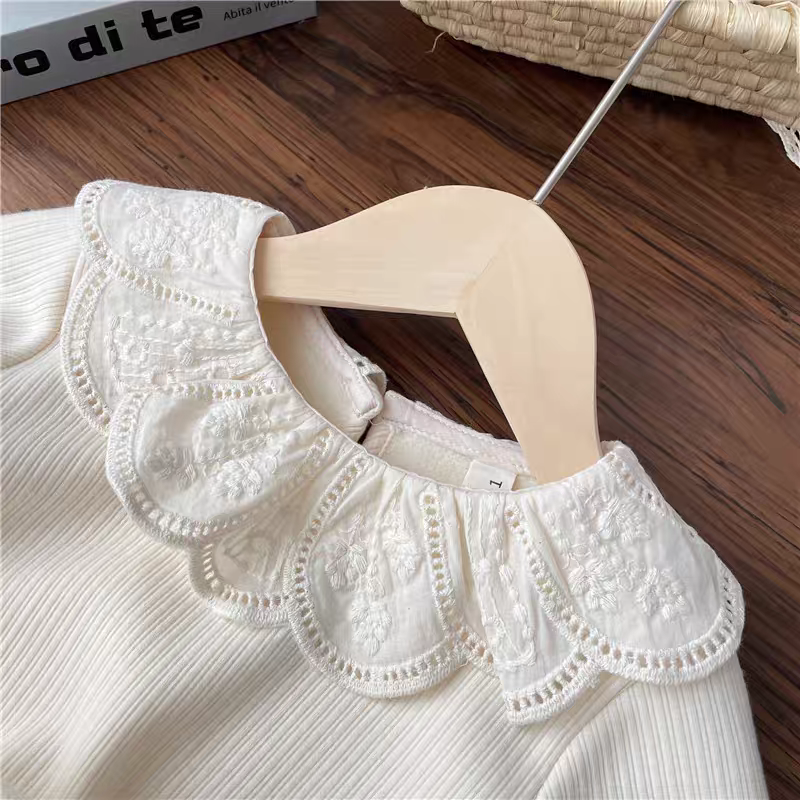 T恤上衣 秋冬女宝宝加绒公主花边领长袖 女童娃娃领打底衫 2025新款