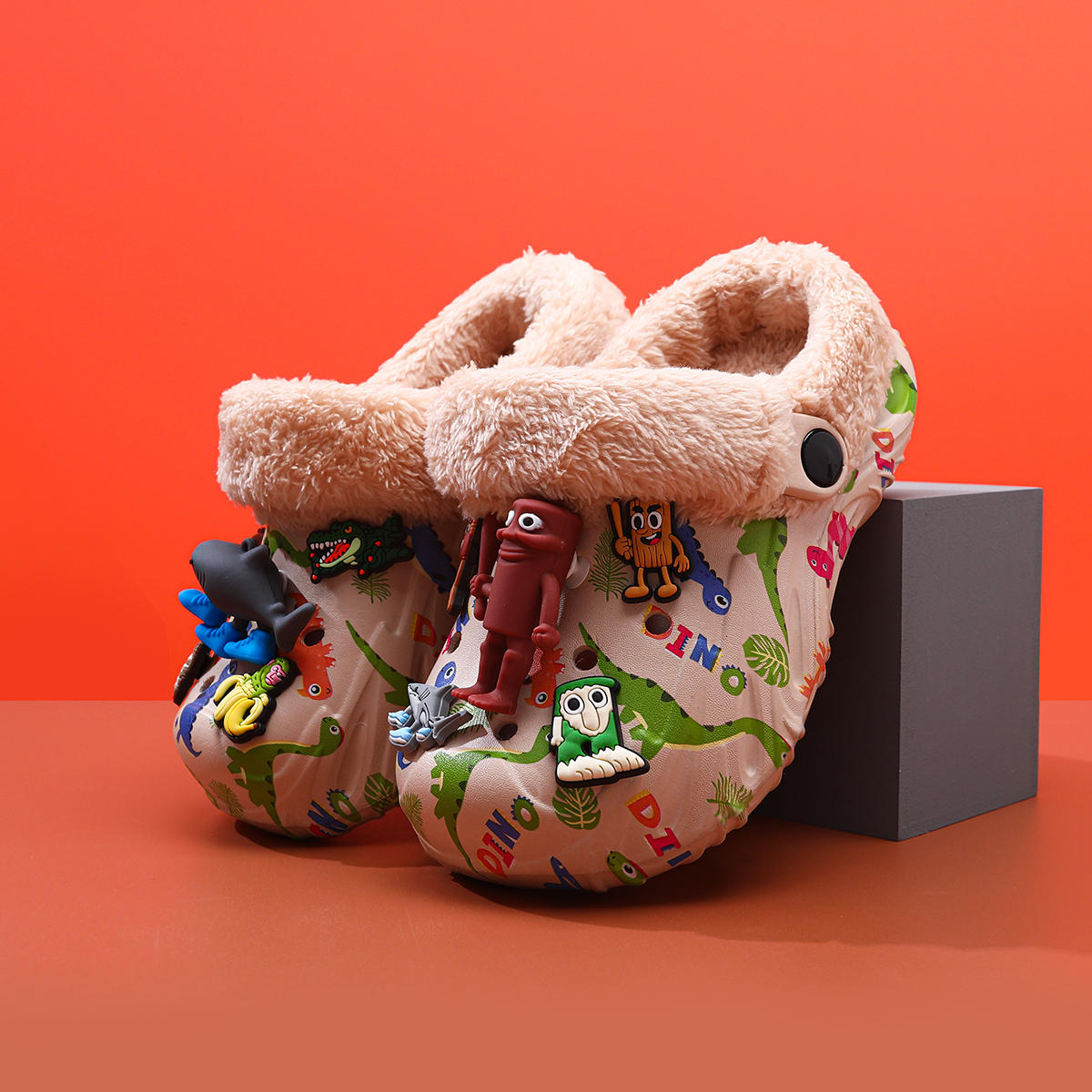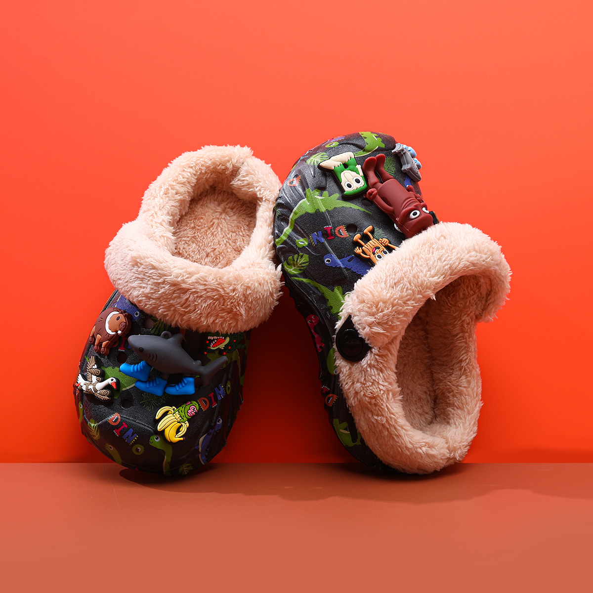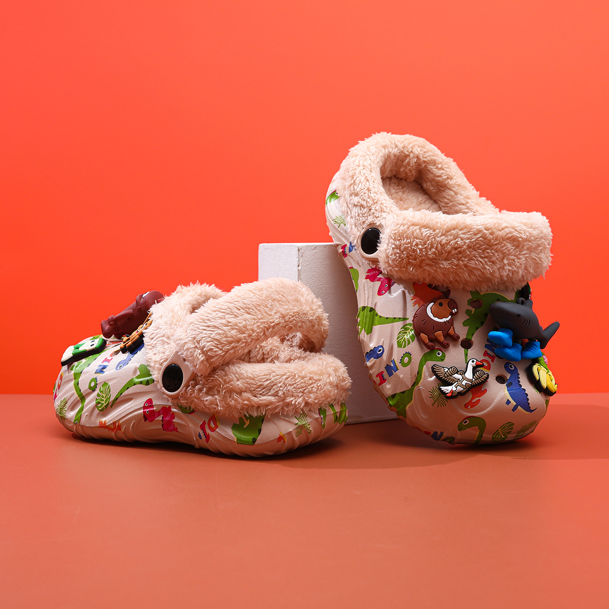 室内毛毛拖鞋 秋冬季 软底防滑保暖 男童棉鞋 外国山海经儿童棉拖鞋