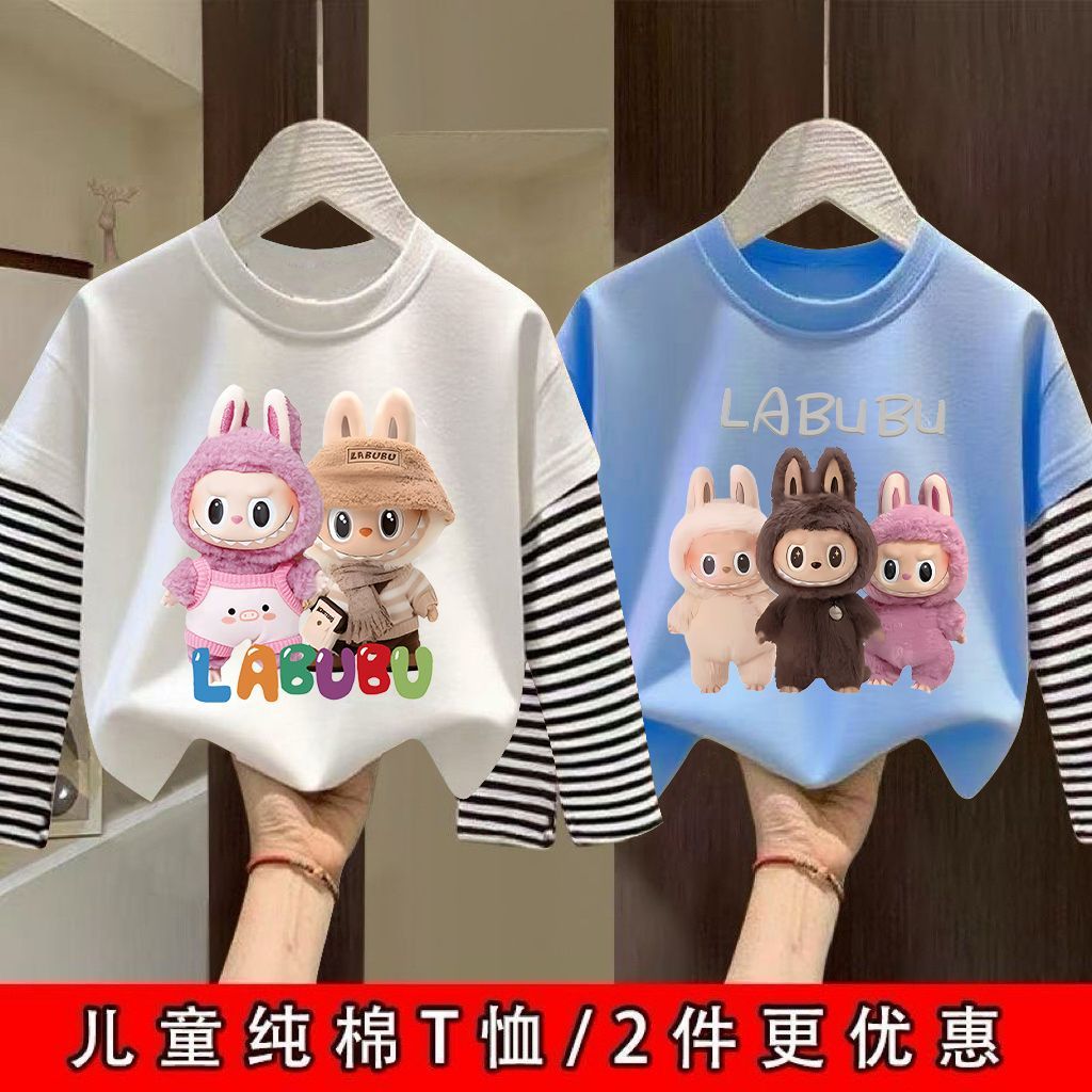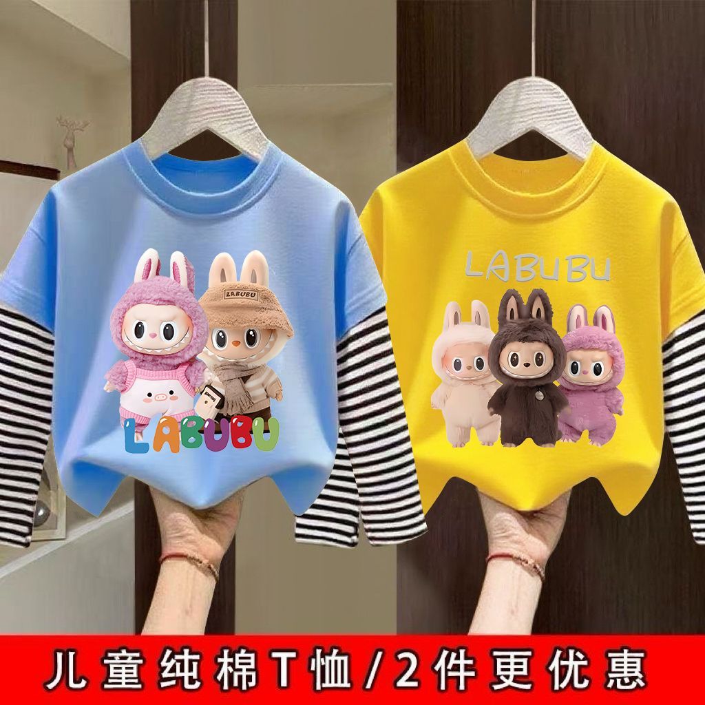 儿童打底衫 洋气纯棉T恤圆领外穿上衣男女童宝宝假两件t恤 春秋长袖