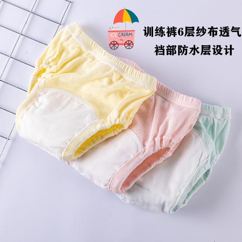 宝宝隔尿裤 夏儿童纯棉纱布透气可洗防水防漏婴幼儿尿布学习训练裤