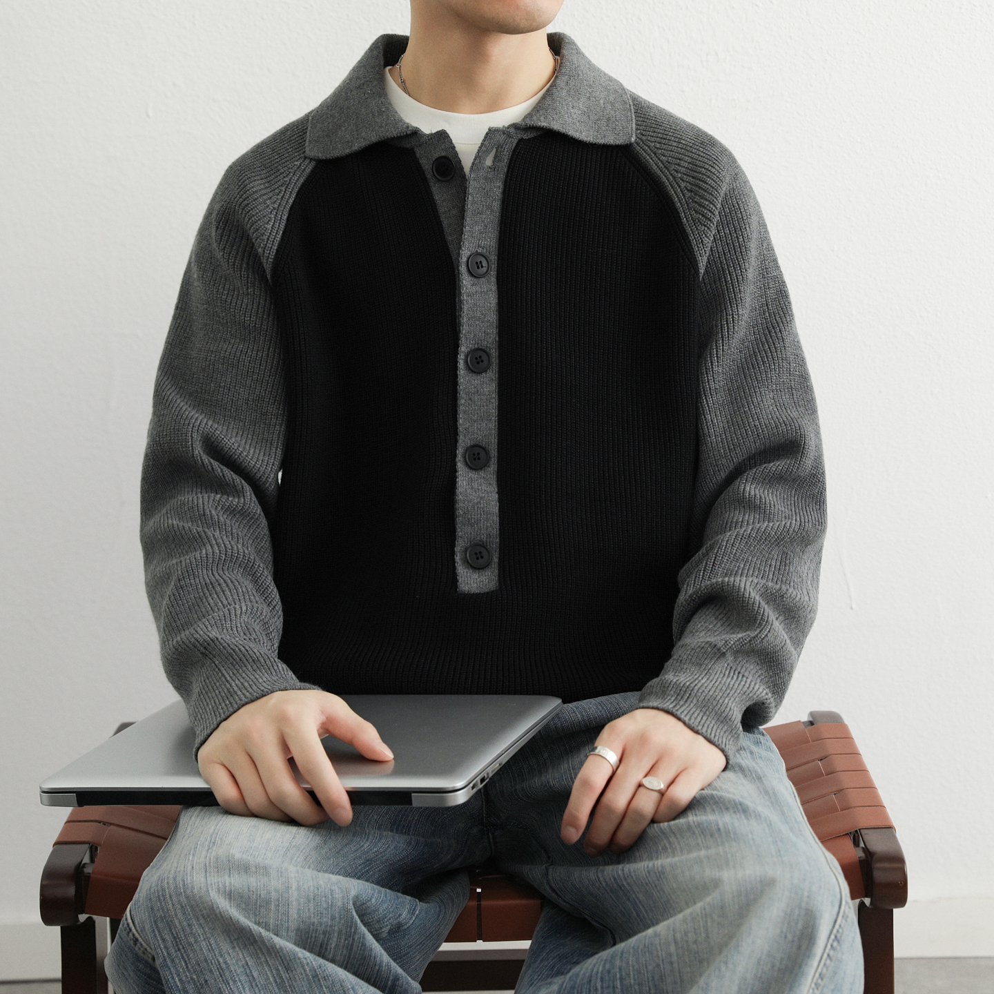 领针织衫 加绒加厚衬衫 内搭保暖假两件毛衣 男士 侨迪蒙拉轻奢秋冬季