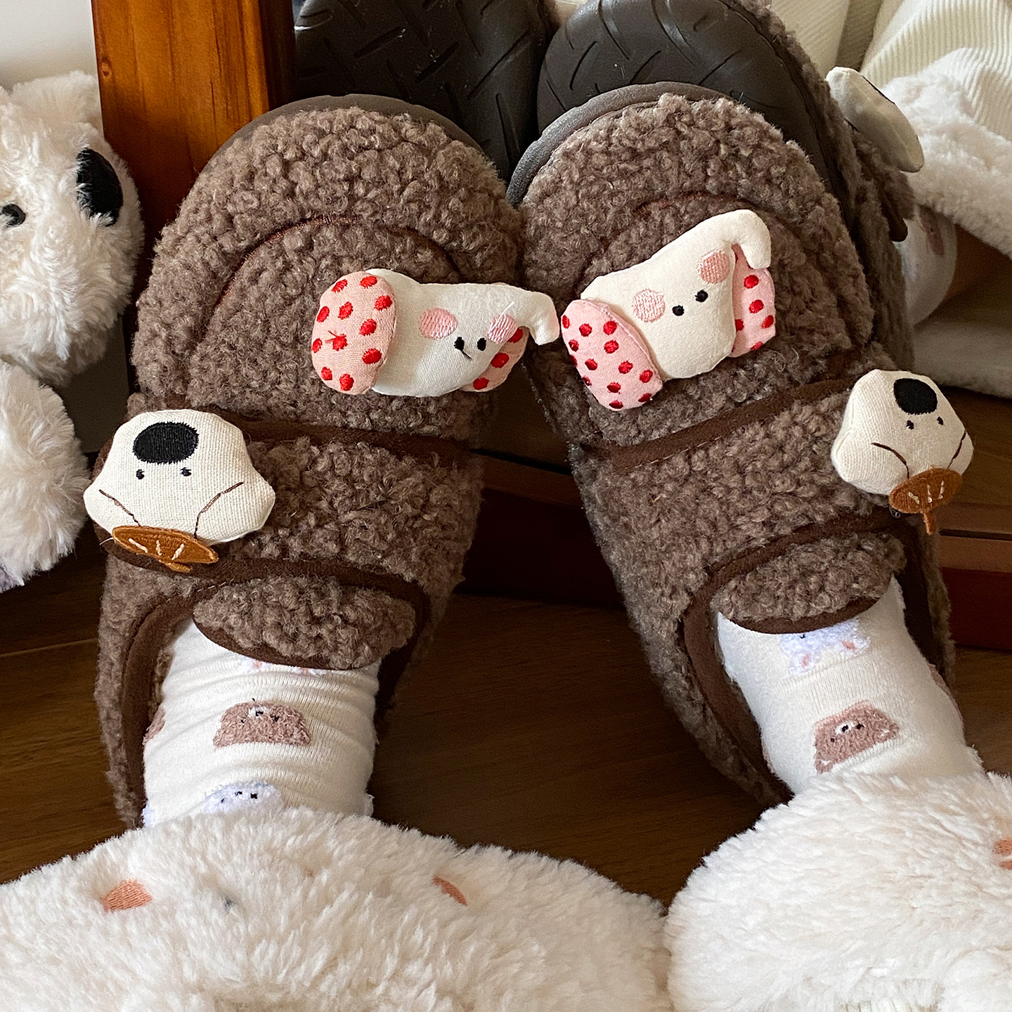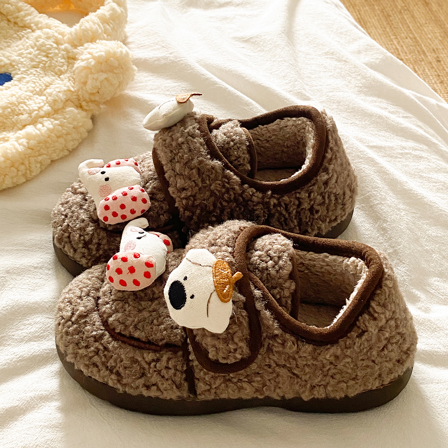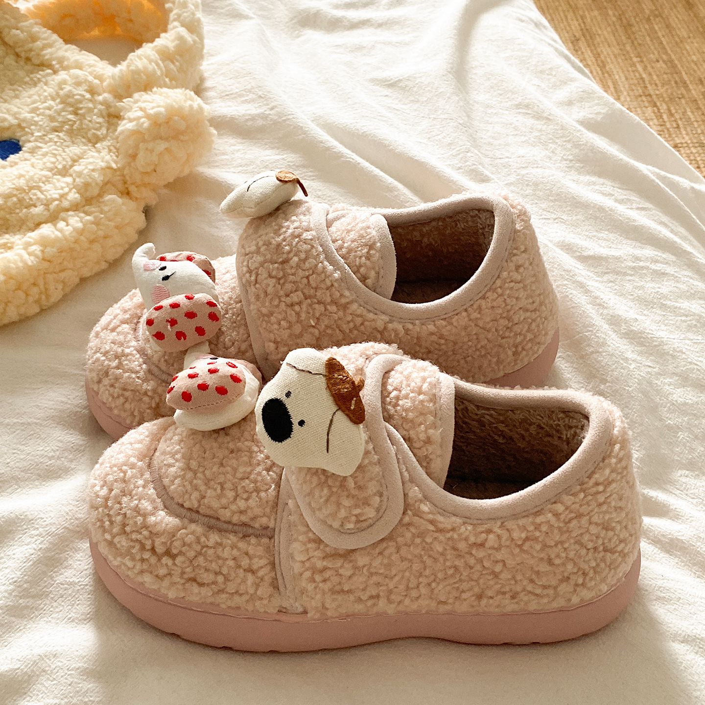 家居室内月子毛毛绒棉鞋 红豆棉拖鞋 包跟保暖2025新款 冬季 女士 女款