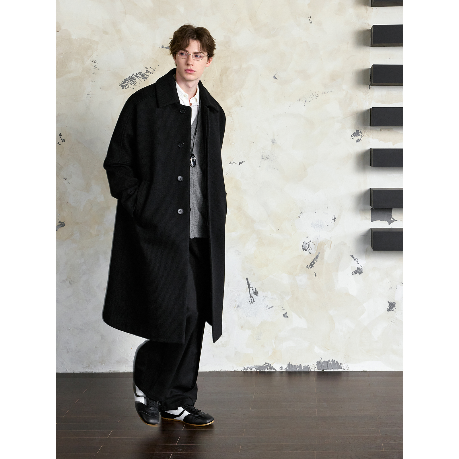 斜纹羊毛 新款 太平鸟男装 毛呢大衣男冬季 宽松外套 中长款