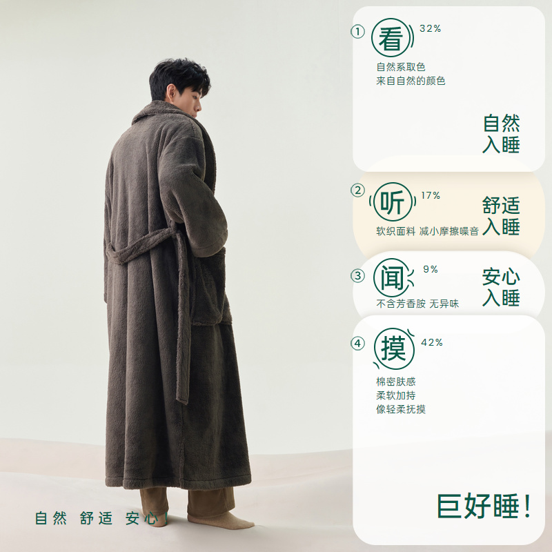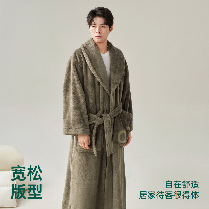 巨保暖 雪花绒加厚珊瑚绒大码 男士 冬款 浴袍 睡衣睡袍冬季 安之伴