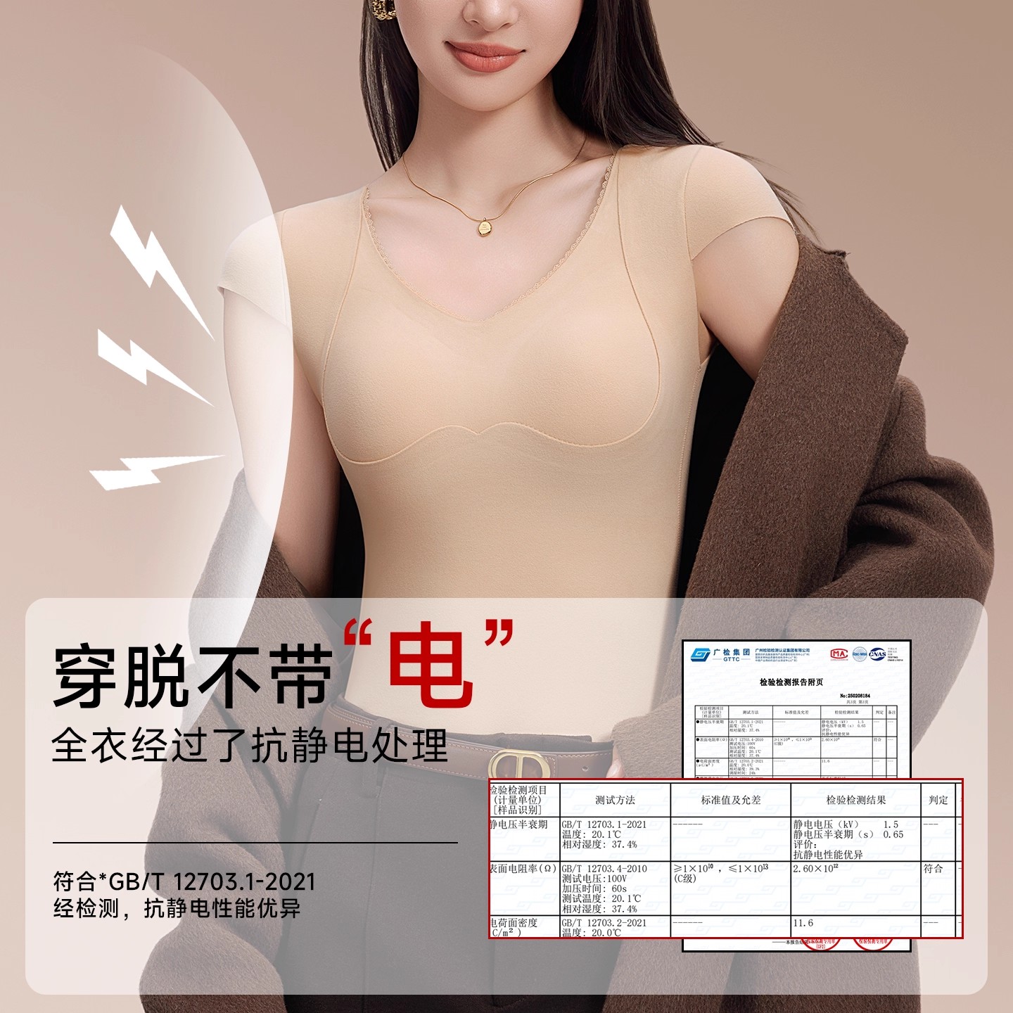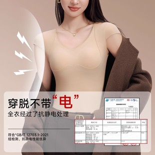 南极人德绒发热内衣无痕保暖背心女士加绒打底上衣带胸垫冬季 内搭