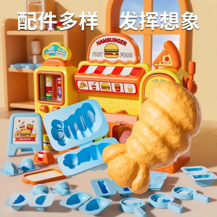 儿童创意彩泥汉堡店玩具趣味无毒粘土过家家橡皮泥套装 女孩手工