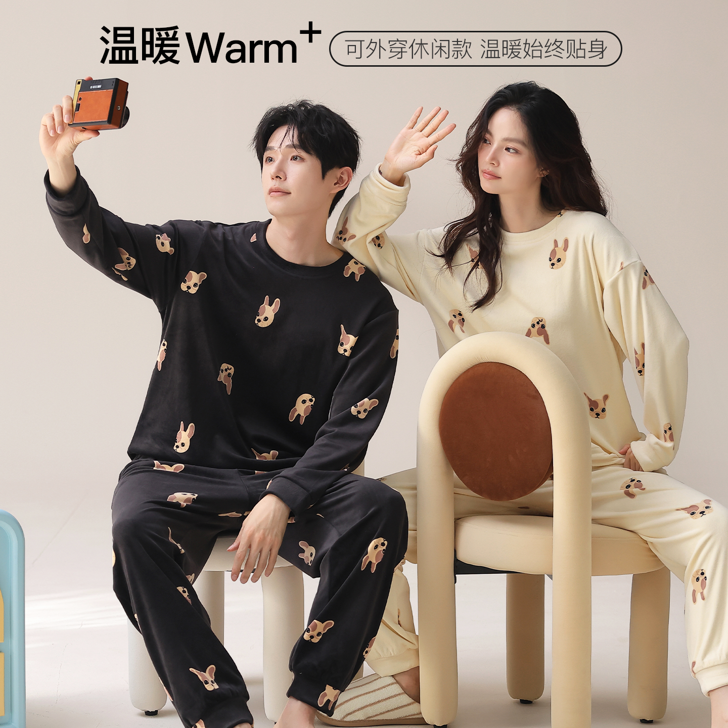 加绒加厚可爱家居服套装 秋冬季 2025新款 猫人法兰绒情侣睡衣男女款