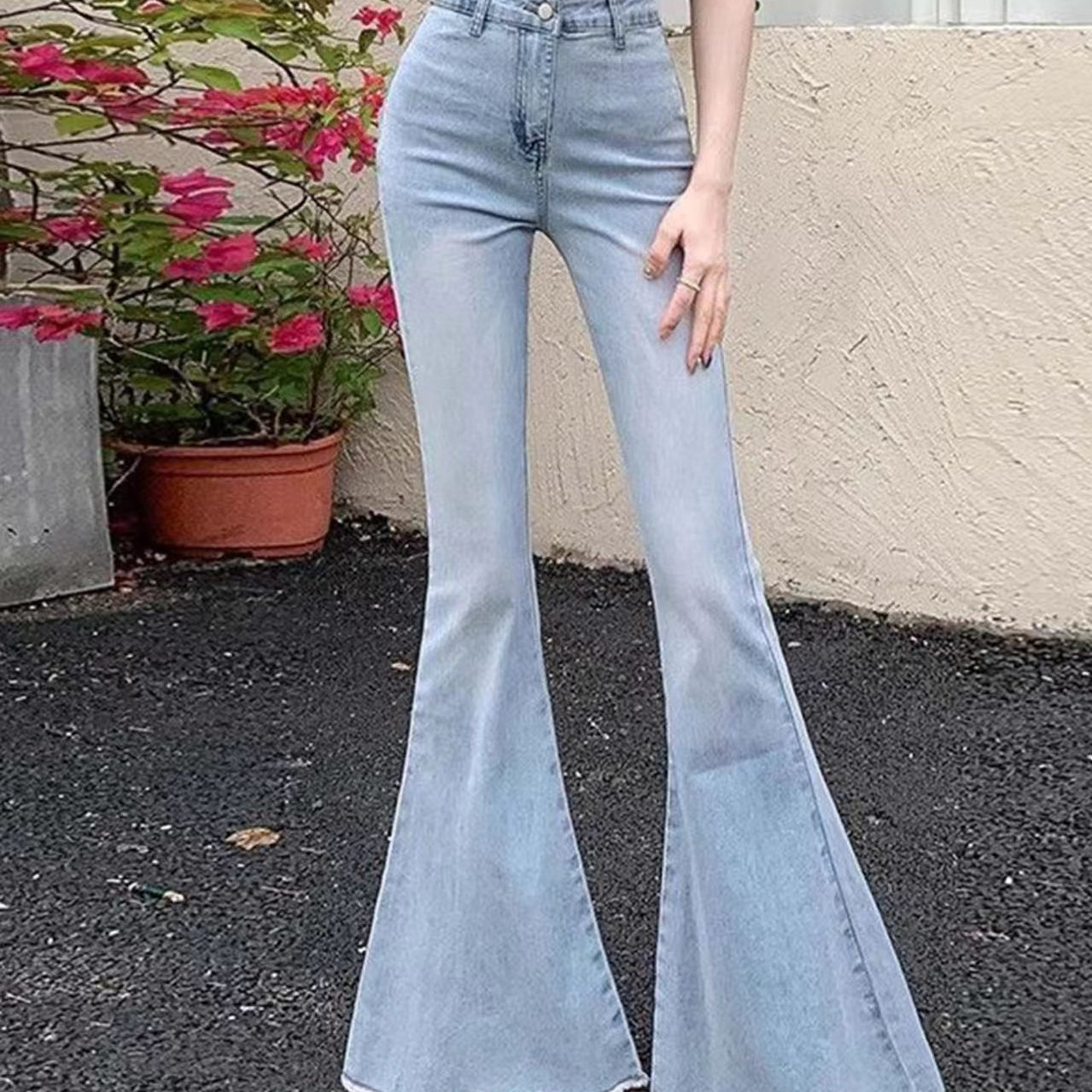 显瘦辣妹马蹄喇叭长裤 高腰修身 女2025秋冬新款 蓝色弹力微喇牛仔裤