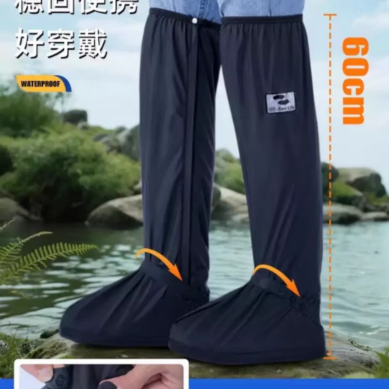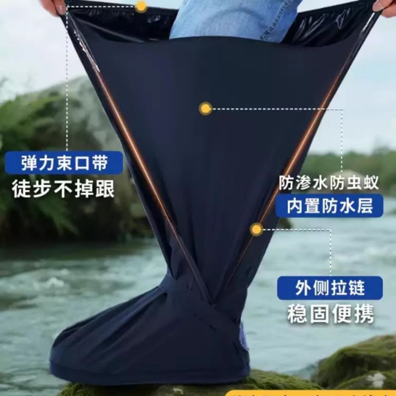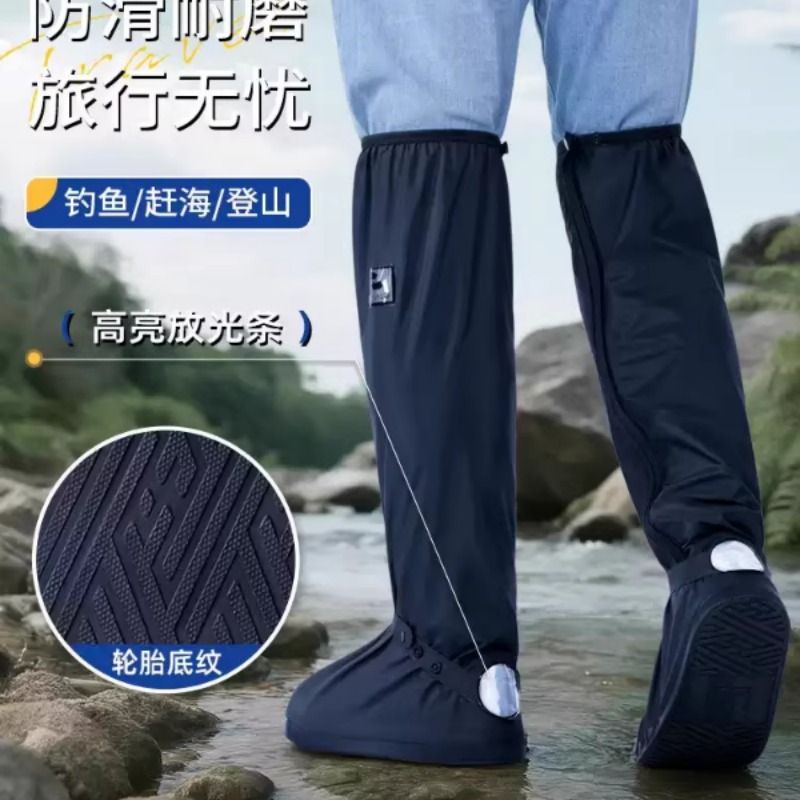 高筒鞋 套 套防水防滑加厚耐磨成人赶海专用雨靴下雨天便携登山雨鞋