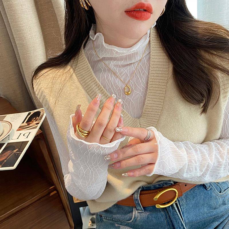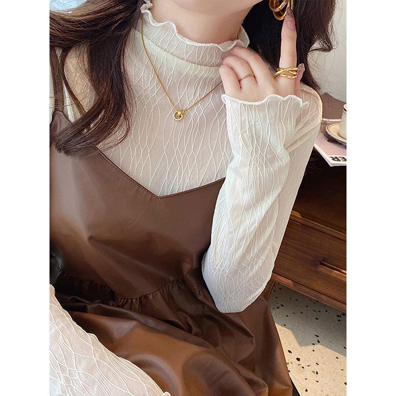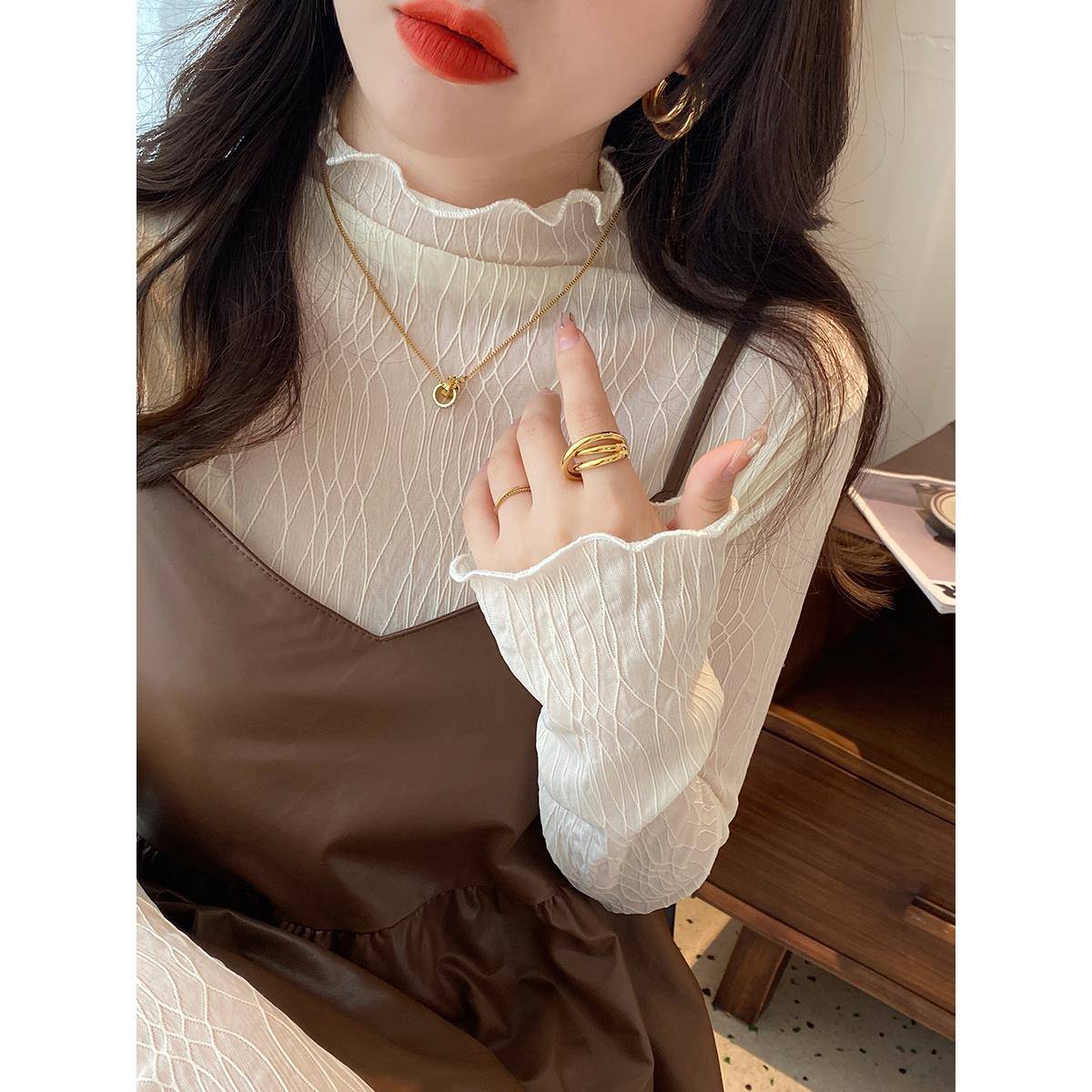 秋冬毛衣内搭叠穿网纱长袖 女2025新款 1012r 蕾丝半高领打底衫 时尚