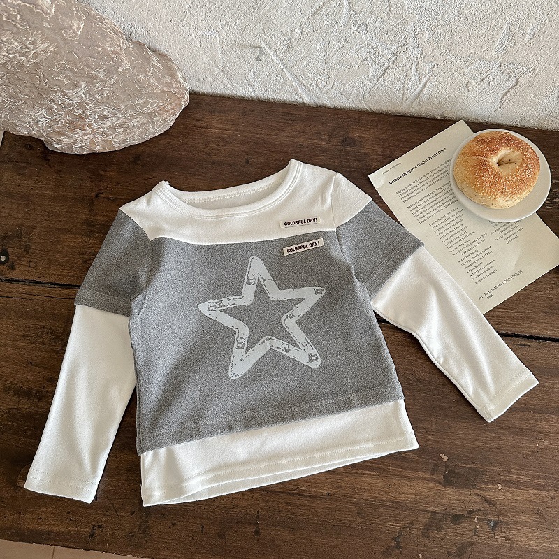 拼接长袖 秋季 女童时尚 儿童打底衫 T恤宝宝印花男童休闲上衣B79 新款