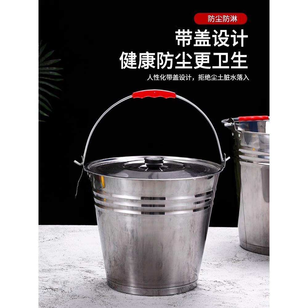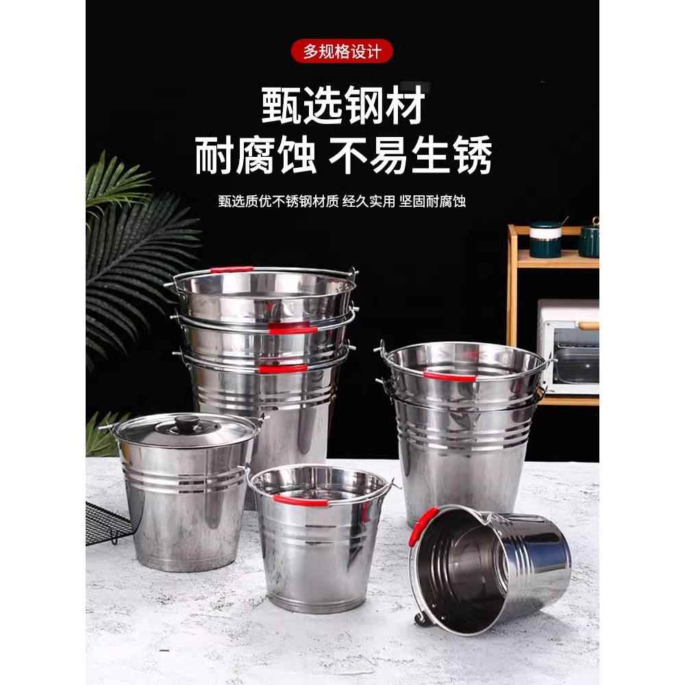 不锈钢水桶手提式 大容量家用带盖提桶油桶储水酒店餐厅加厚提水桶