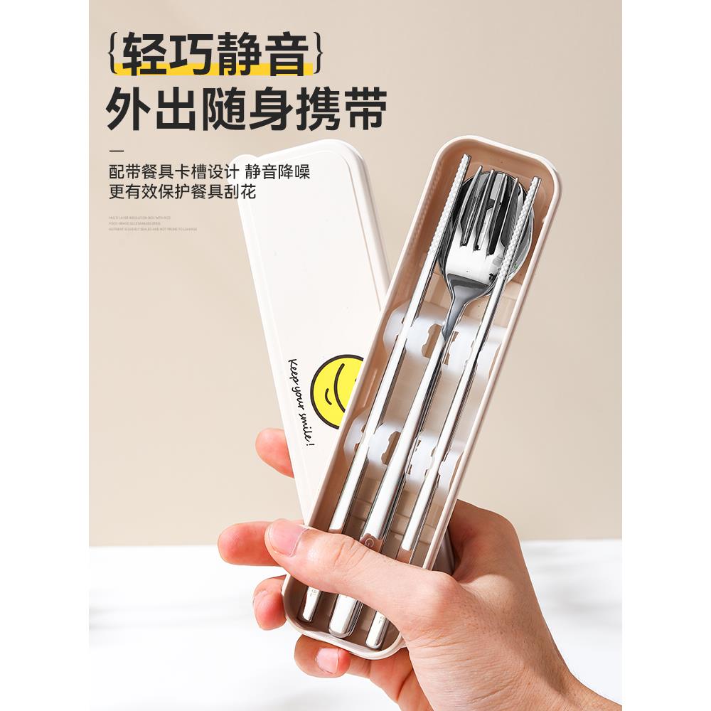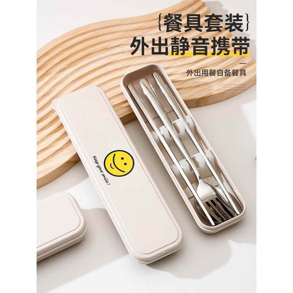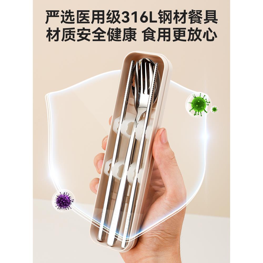 食品级不锈钢筷子316勺子叉子三件套装 收纳304便携餐具成人外带筷
