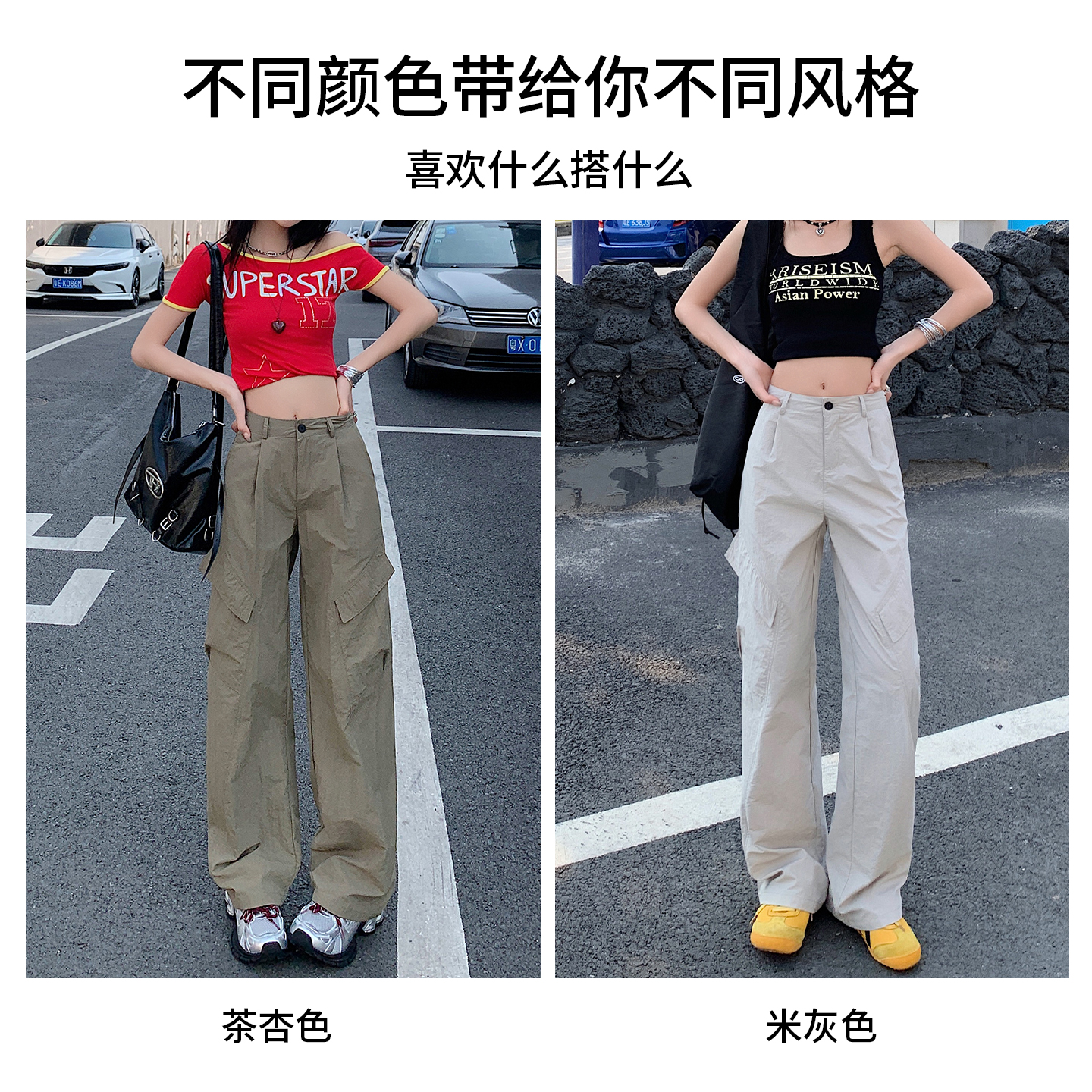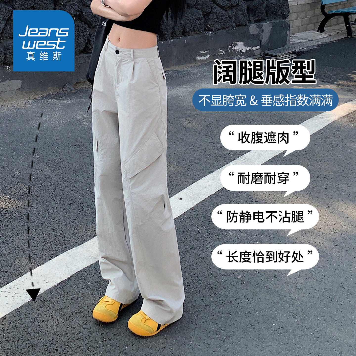 高腰显瘦阔腿休闲长裤 KZH真维斯港风工装 宽松直筒裤 女秋冬新款 裤