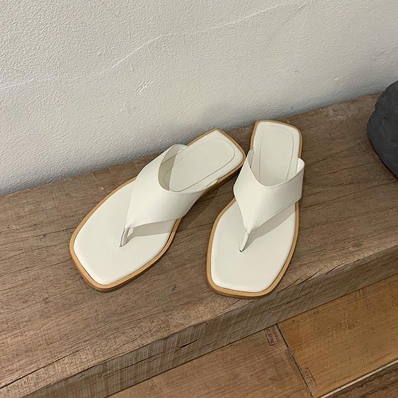 外穿百搭半拖凉 新款 好货法式 复古风方头粗跟夹趾人字拖女2025夏季