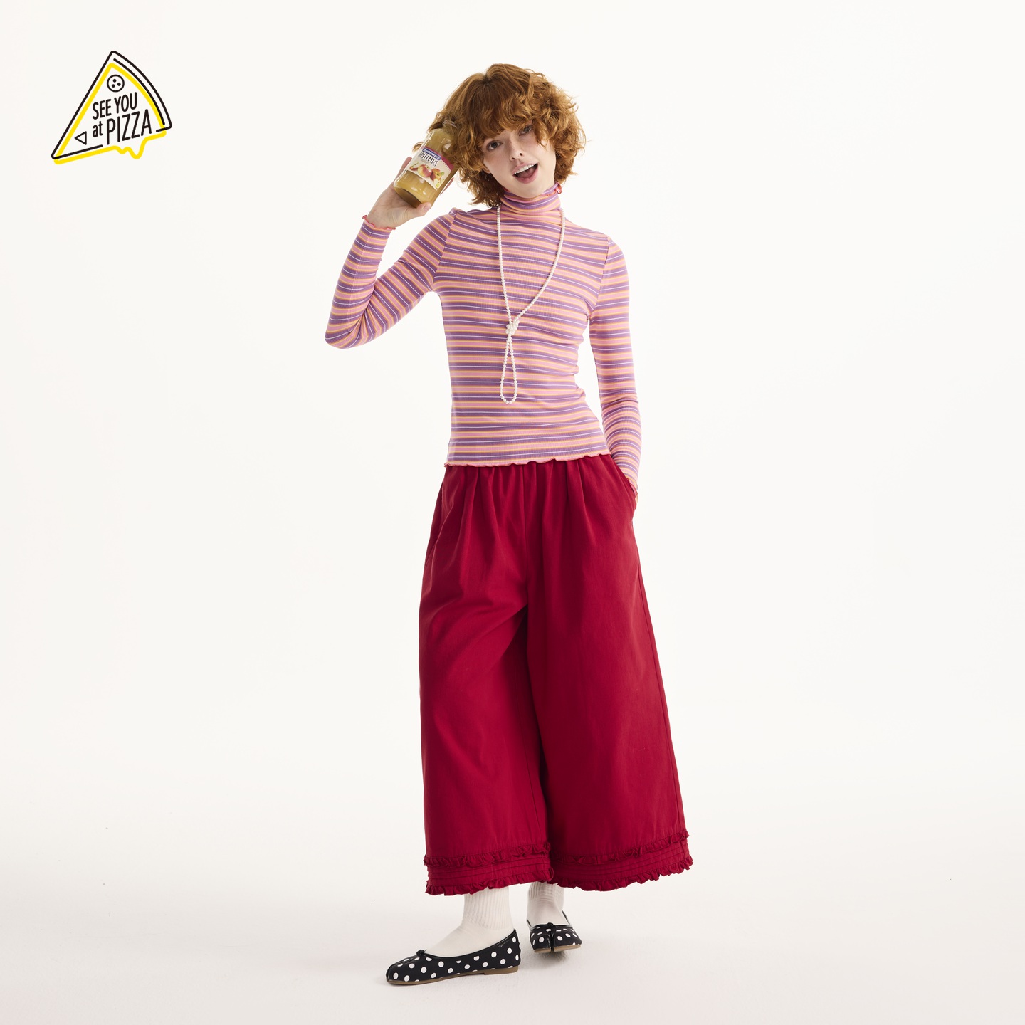 YOU 设计感花边长袖 新款 T恤607178 PIZZA上衣女2025秋季 SEE