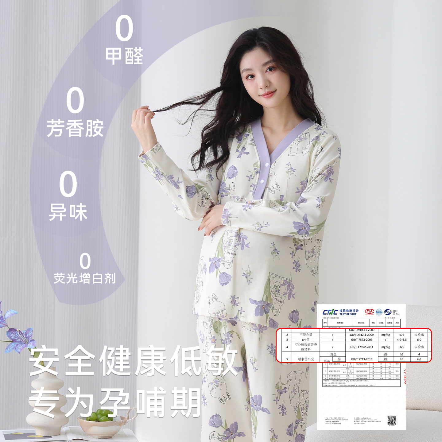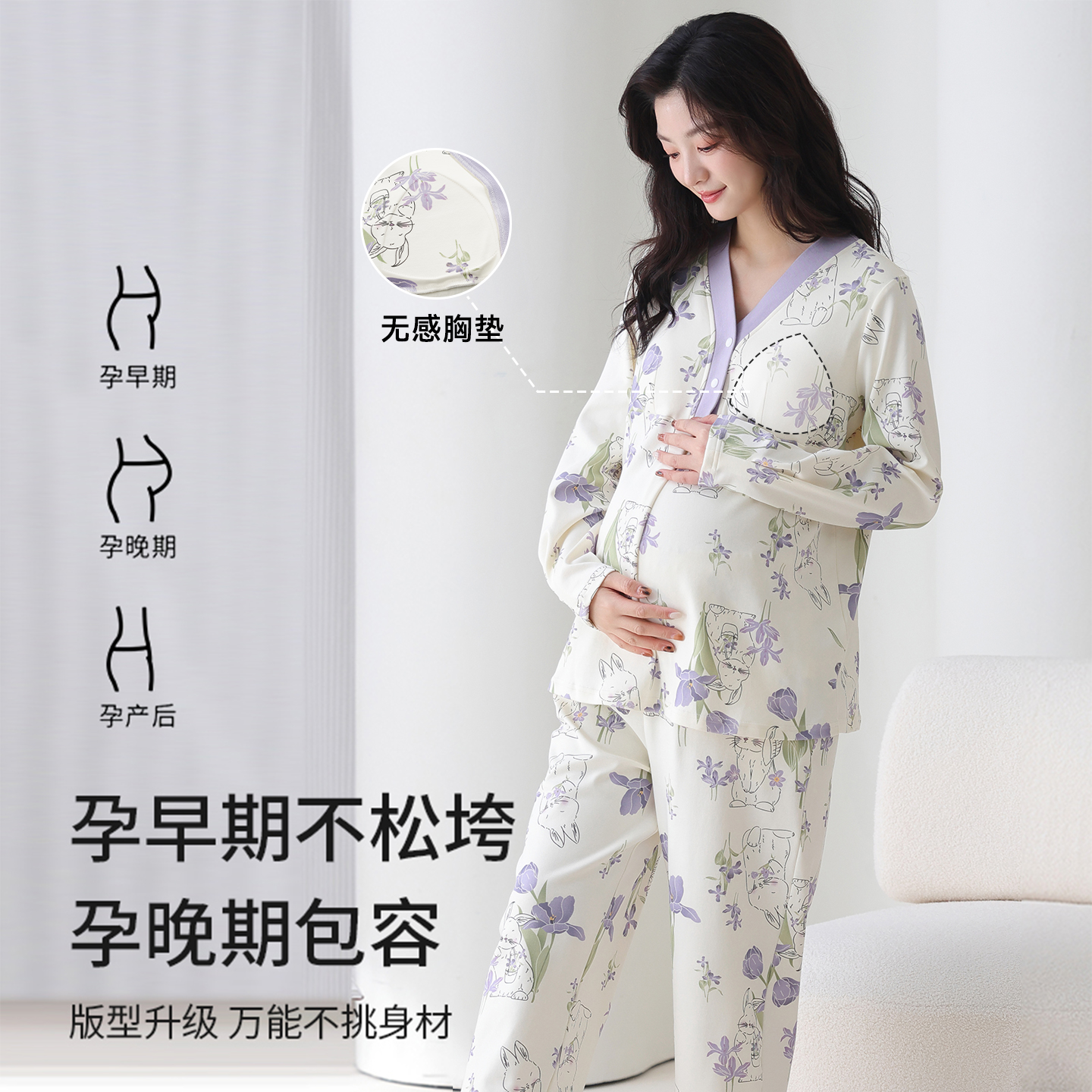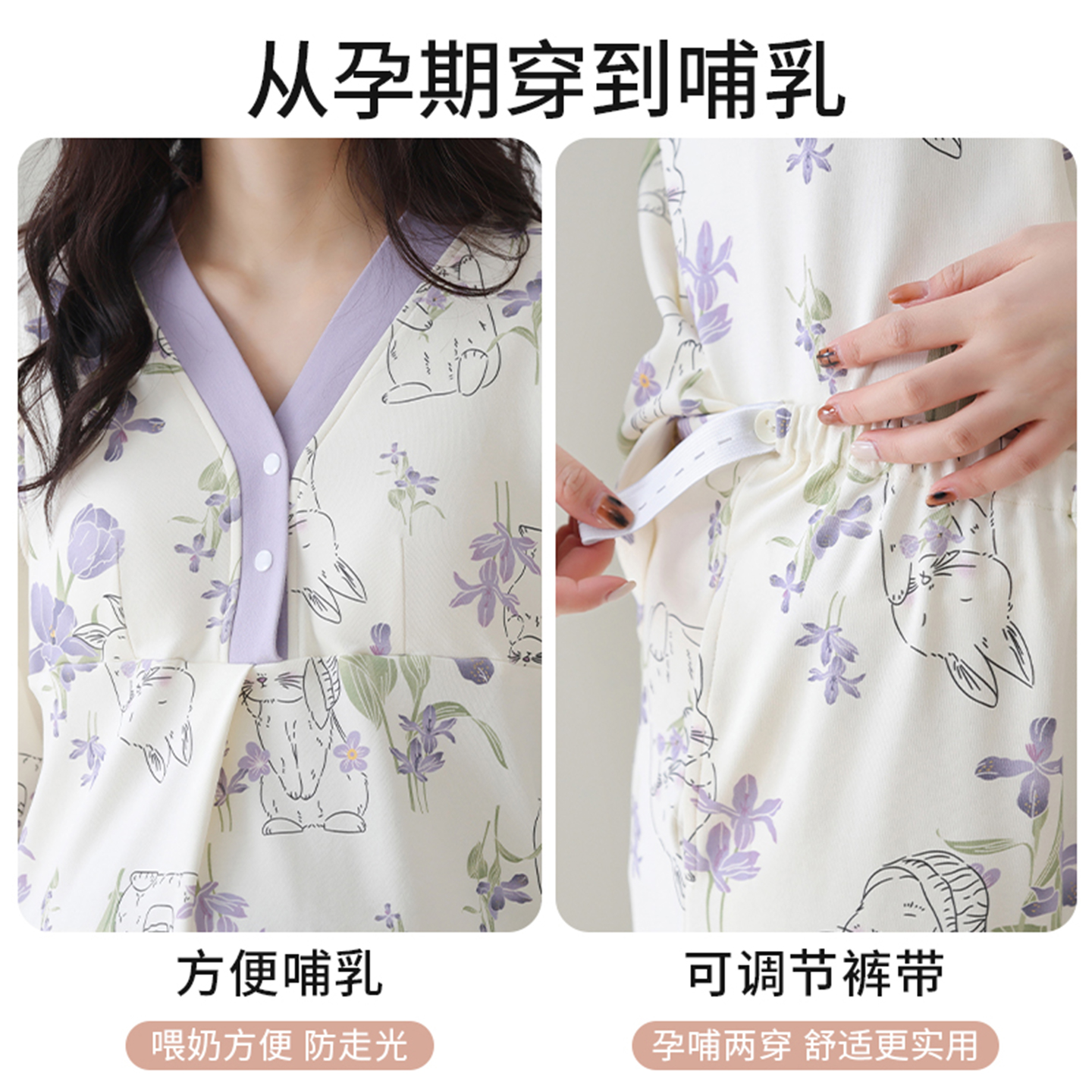 都市丽人纯棉吸汗月子服新款 家居服 春秋带胸垫睡衣孕妇哺乳衣大码