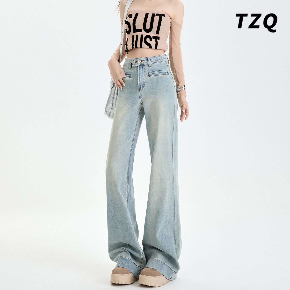 女辣妹显腿长简约高级感阔腿裤 牛仔裤 25春显瘦韩版 ablueberry