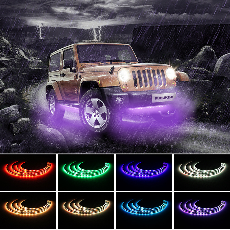 汽车LED红外蓝牙声控底盘声控灯一拖四车底RGB七彩音乐氛围迎宾灯