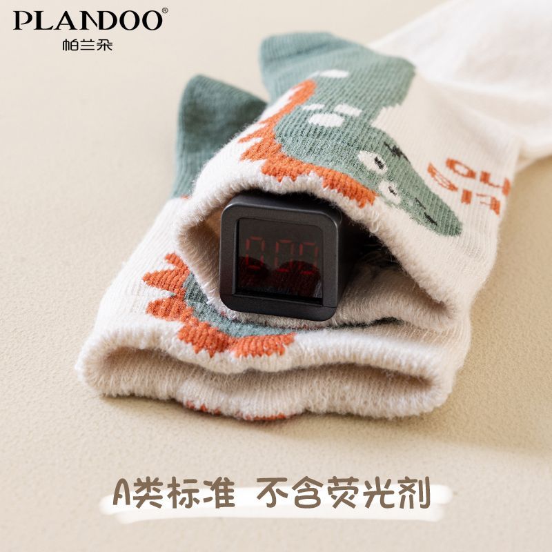 帕兰朵儿童棉质春秋季 袜子男童可爱霸王龙舒适百搭透气保暖中筒袜