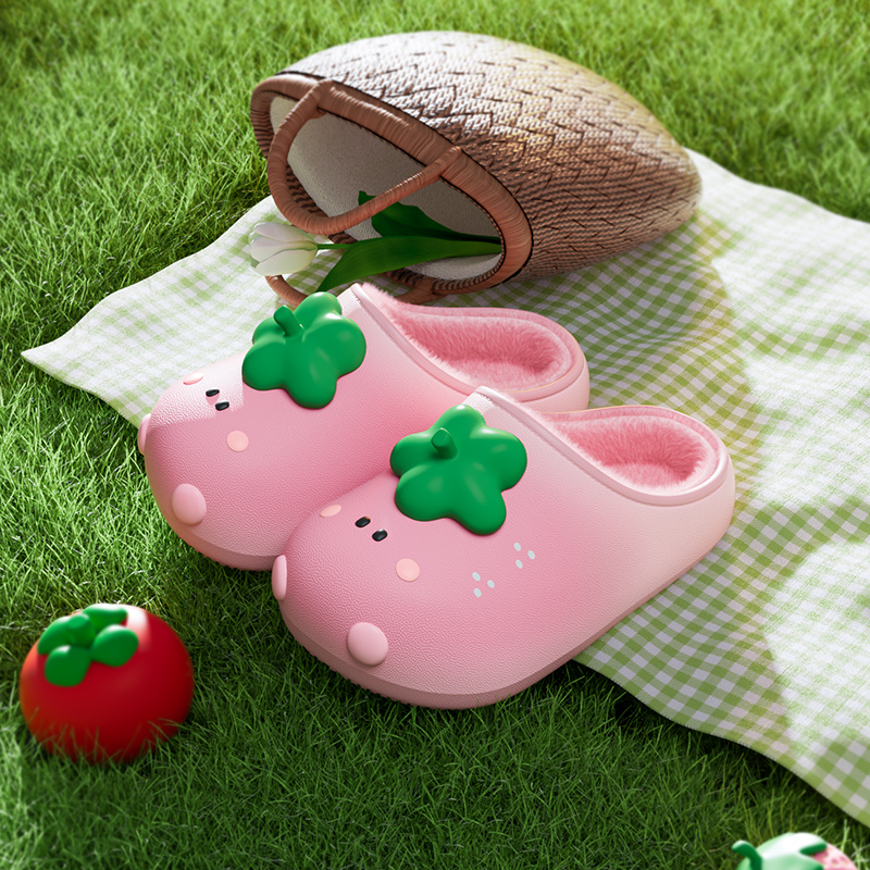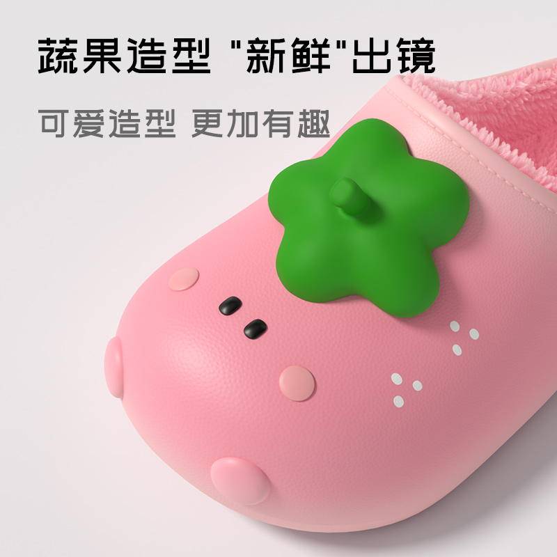 室内家居防水保暖毛毛拖鞋 2025新款 女秋冬季 可爱少女心草莓棉拖鞋