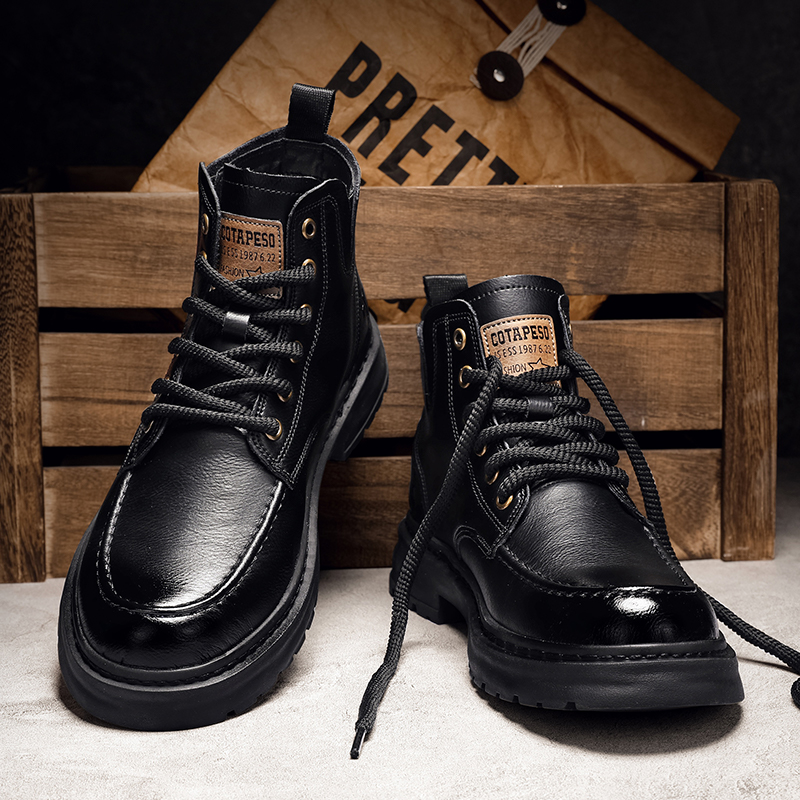 秋季 潮鞋 2025新款 运动厚底工装 复古英伦风高帮皮靴男士 马丁靴男款