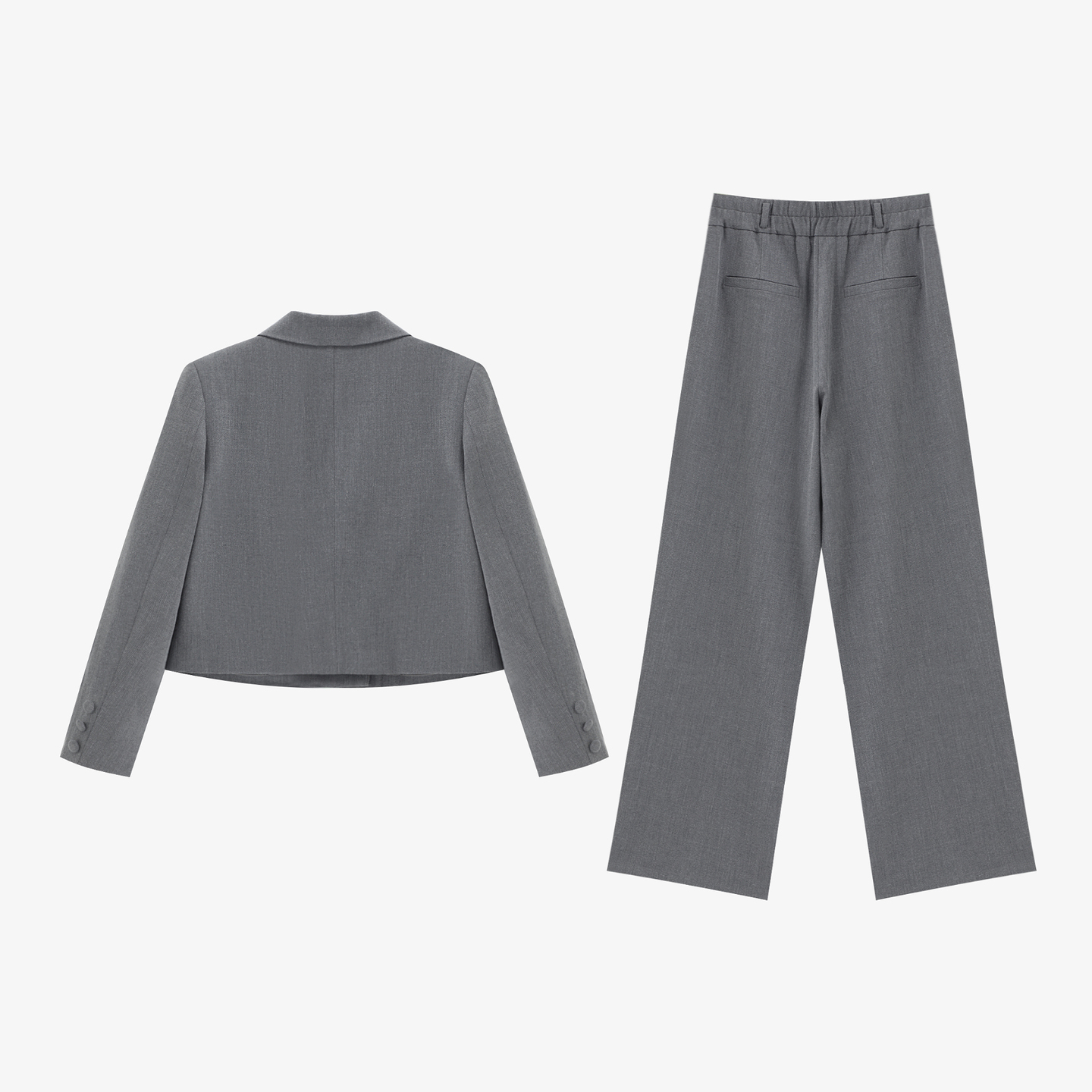 House 套装 百家好灰色短款 阔腿裤 女气质通勤休闲两件套 西装 Basic