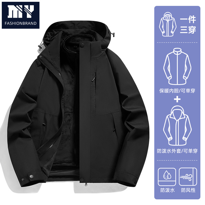 外套 高街宽松加绒连帽运动卫衣男学生百搭帽衫 秋冬季 基础纯色美式