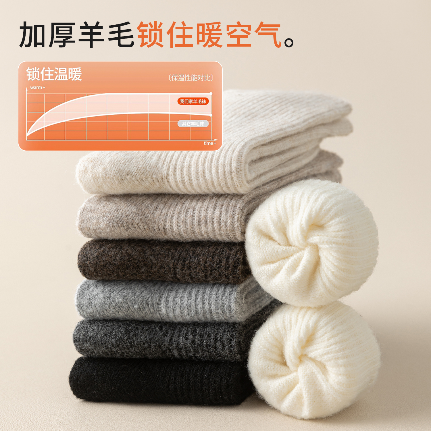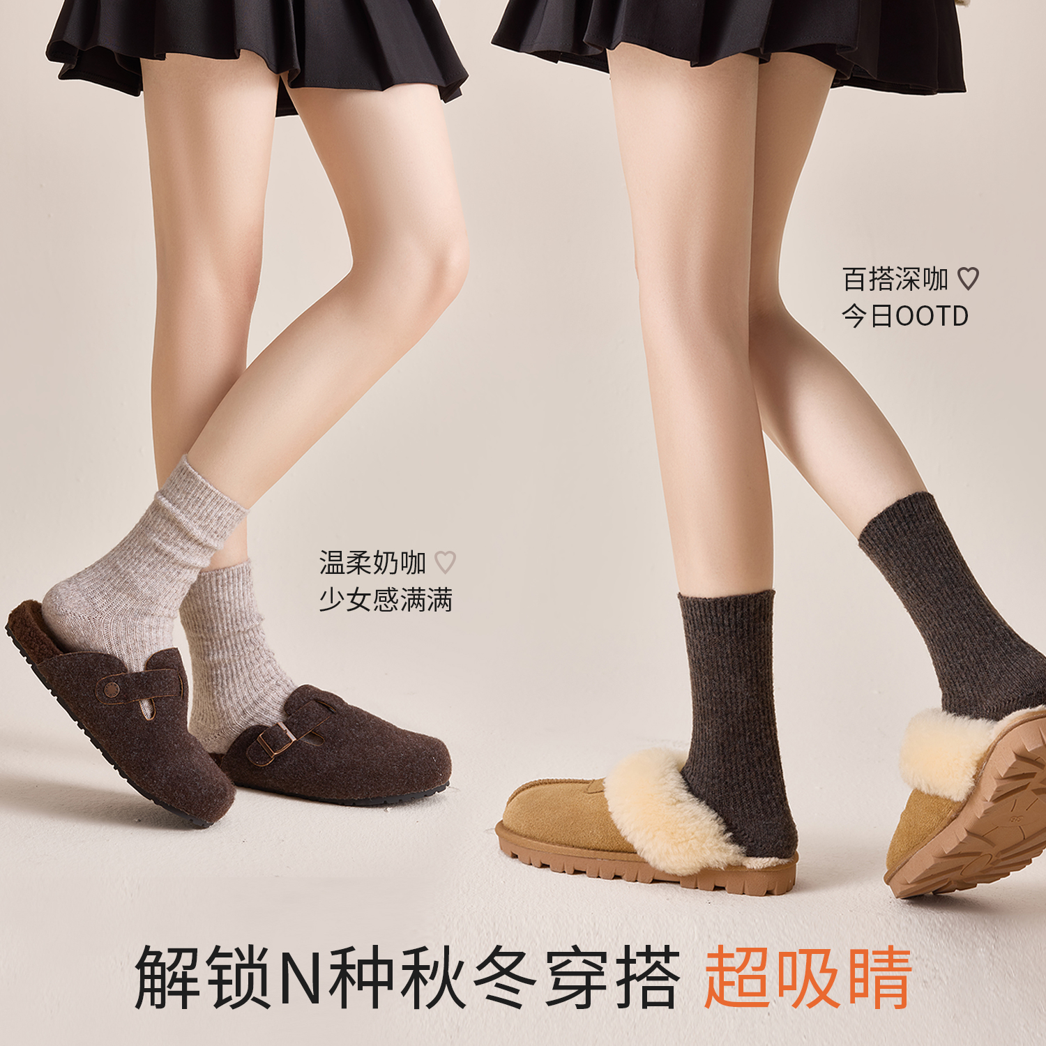 咖色袜子女秋冬中筒羊毛袜加厚保暖美利奴长筒羊绒堆堆袜配勃肯鞋