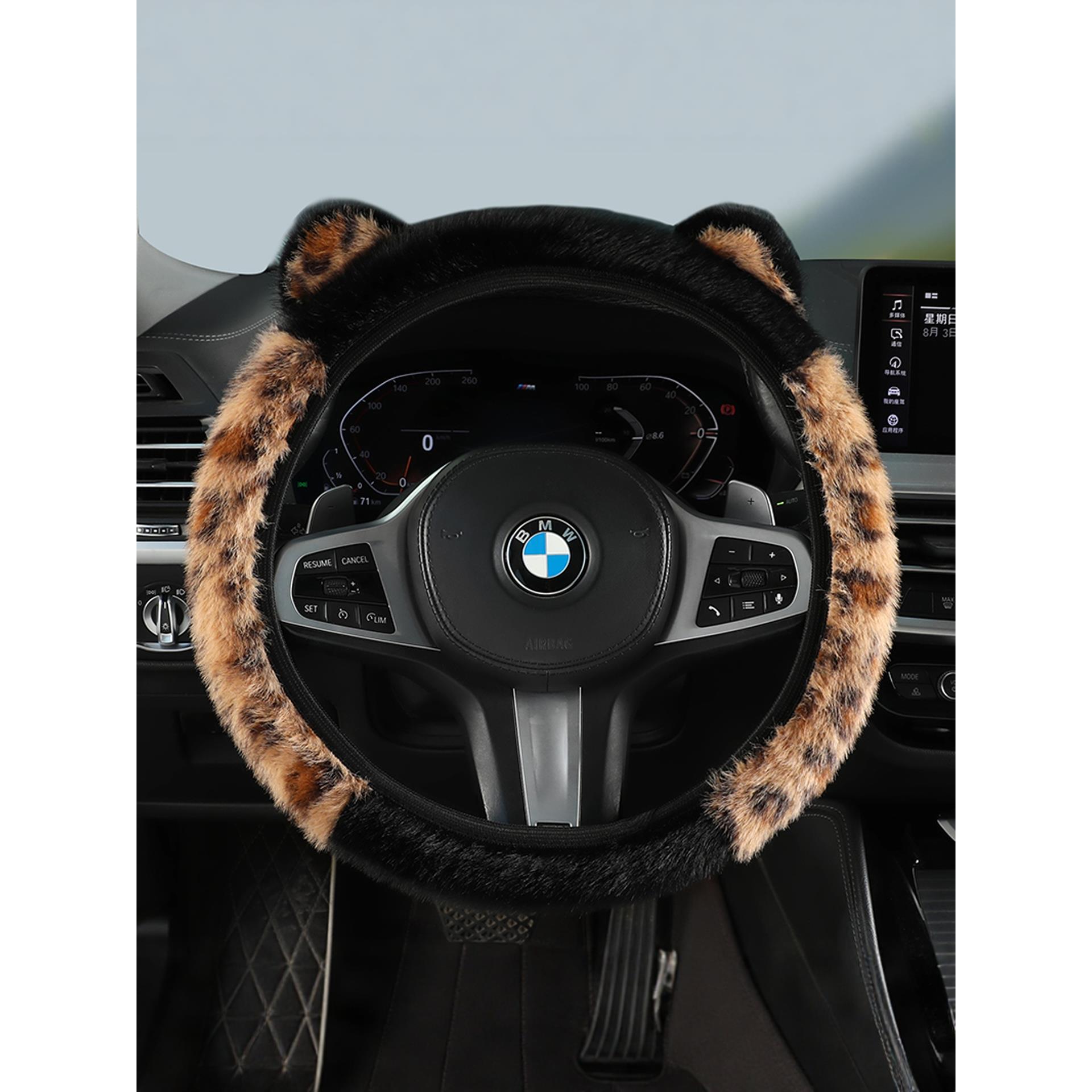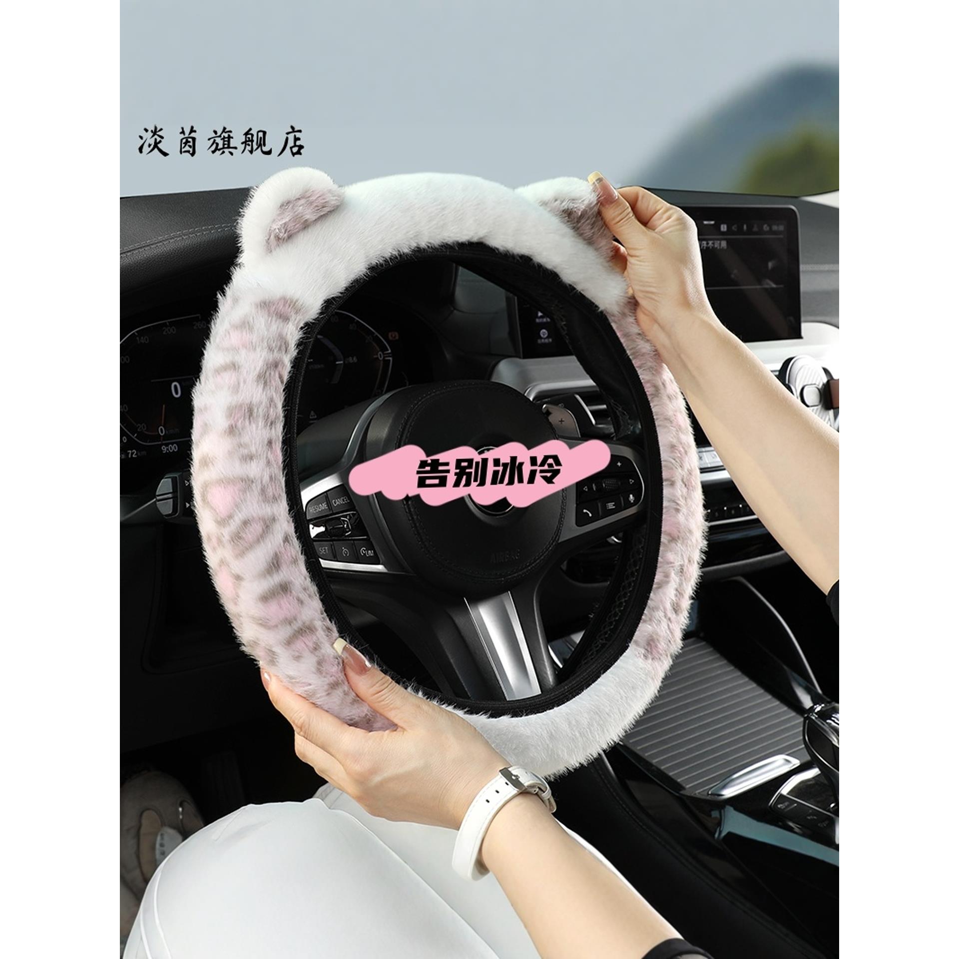 韩版 长毛绒汽车方向盘套防滑保暖通用型车把套不掉毛耳朵汽车 冬季