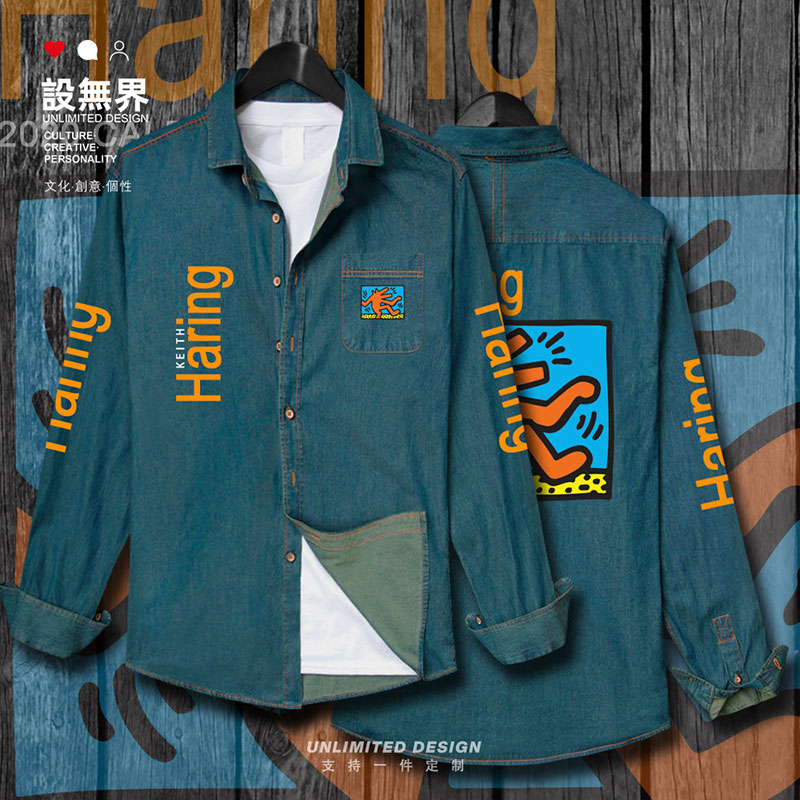 无界 男女衣服设 涂鸦基思哈林Keith Haring波普艺术手绘牛仔衬衫
