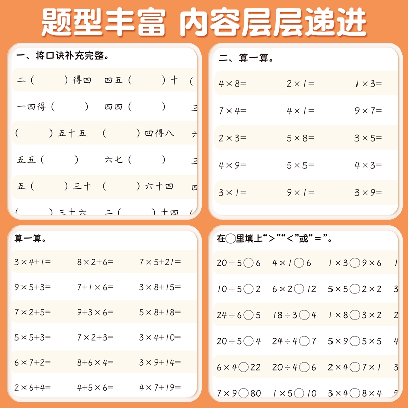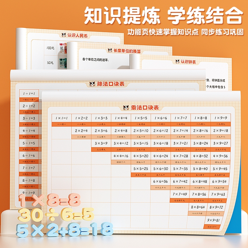 数学专项训练教材同步练习册二年级上册乘法专项练习题一年级下册表内乘法九九乘除法口诀表小学认识人民币钟表和时间长度单位换算
