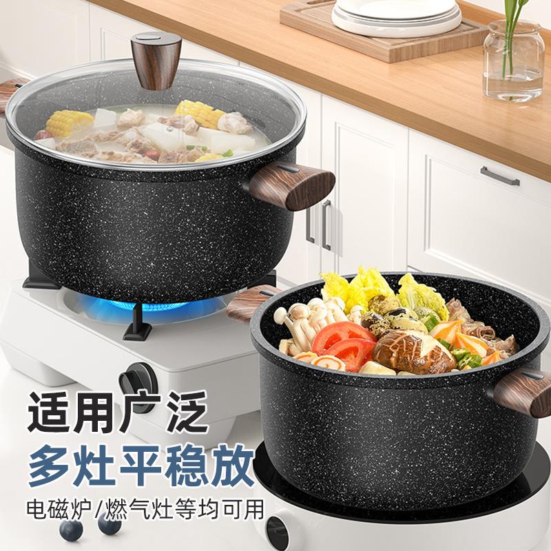 麦饭石汤锅不易粘锅家用蒸煮炖双耳锅炖汤锅大容量电磁炉燃气51