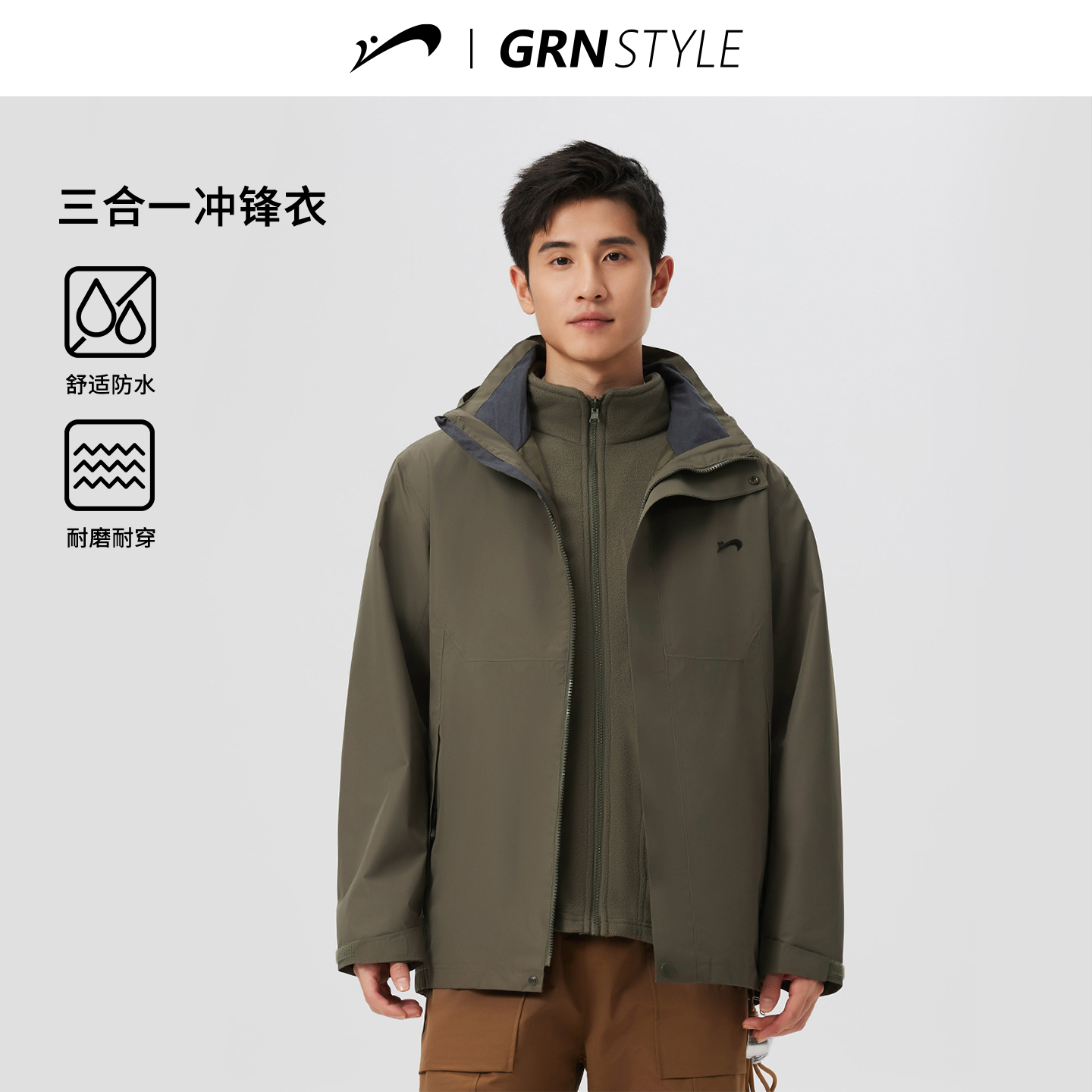 软壳冲锋加厚运动夹克风衣爸爸男装 男士 秋冬新款 鸿星尔克外套男款