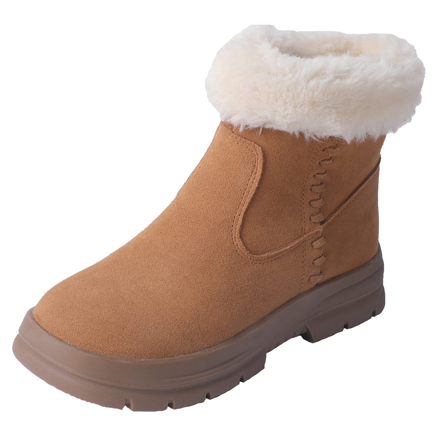 子加绒加厚棉靴妈妈短靴冬鞋 鞋 新款 真皮厚底保暖雪地靴女2025冬季
