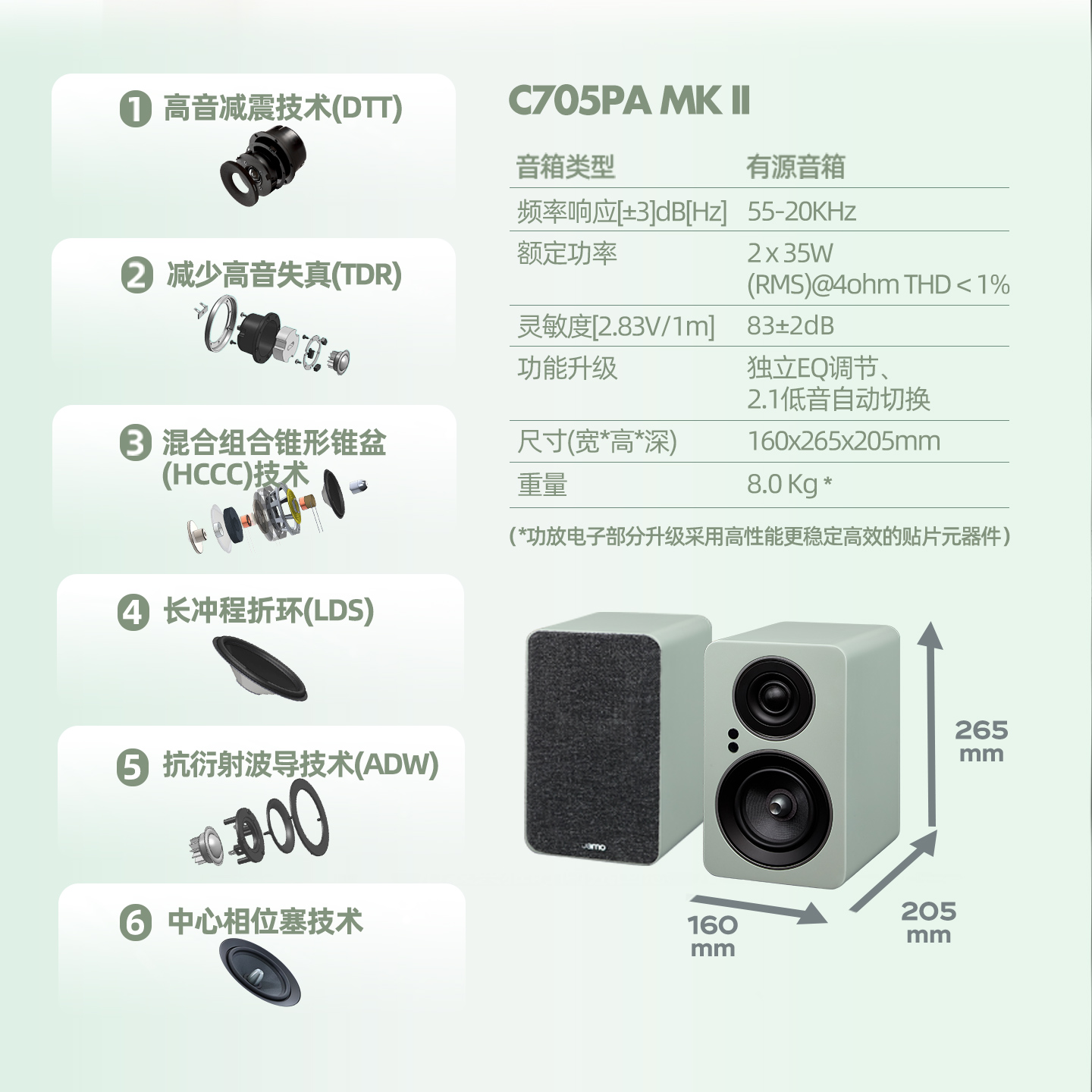 jamo尊宝C705PA 上市 MKII有源发烧书架音箱蓝牙桌面音响 新品