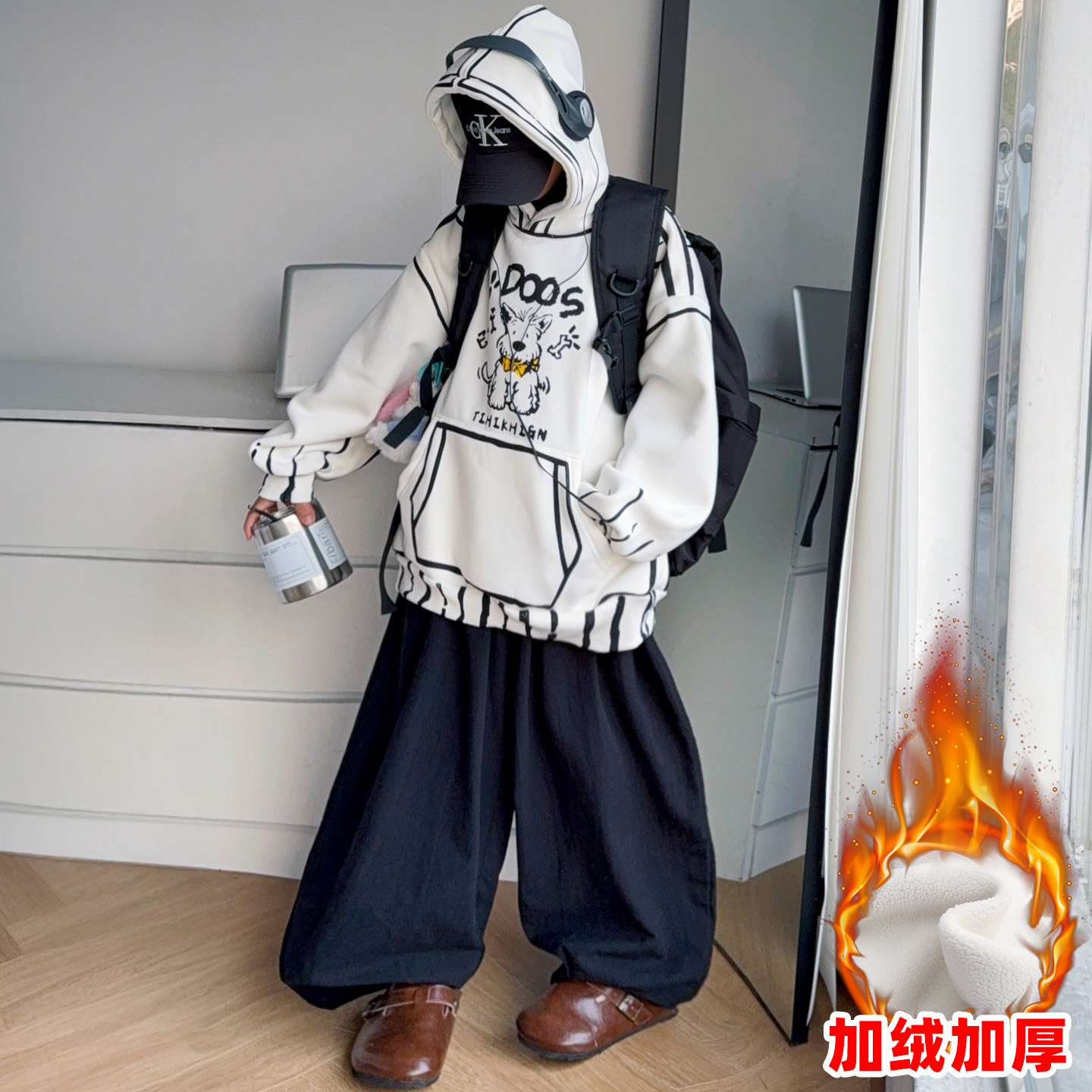 女童加绒卫衣2025新款 小女孩衣服 儿童上衣秋冬一体绒潮酷穿搭冬装