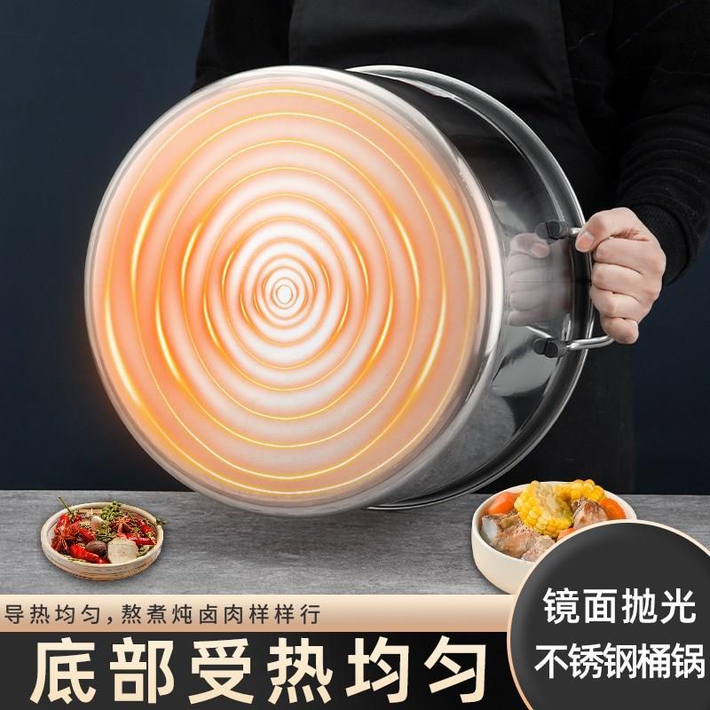 不锈钢桶圆桶带盖商用汤桶大容量烧水桶燃气炖锅卤桶加厚家用汤锅