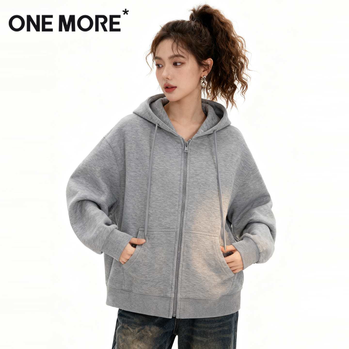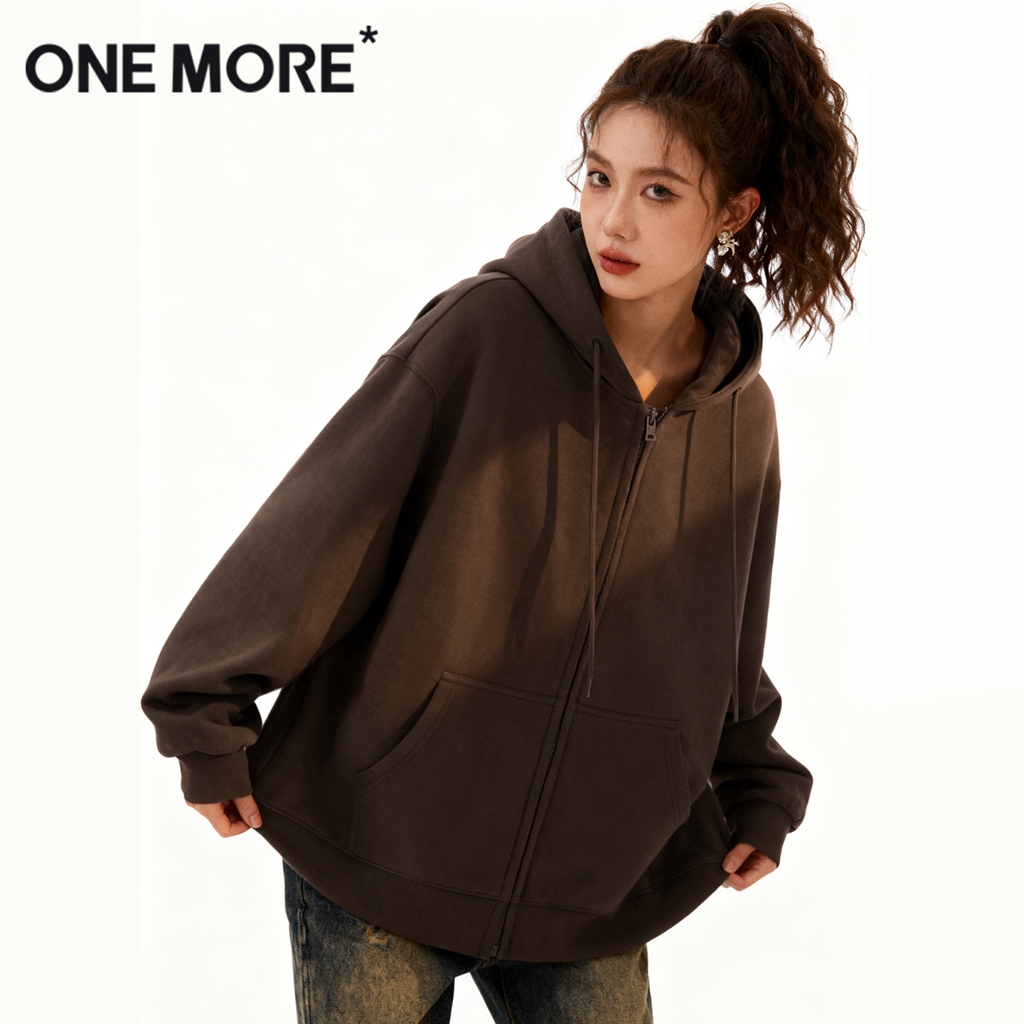 加绒加厚开衫 one 秋冬季 2025新款 宽松连帽外套Y more连帽卫衣女款