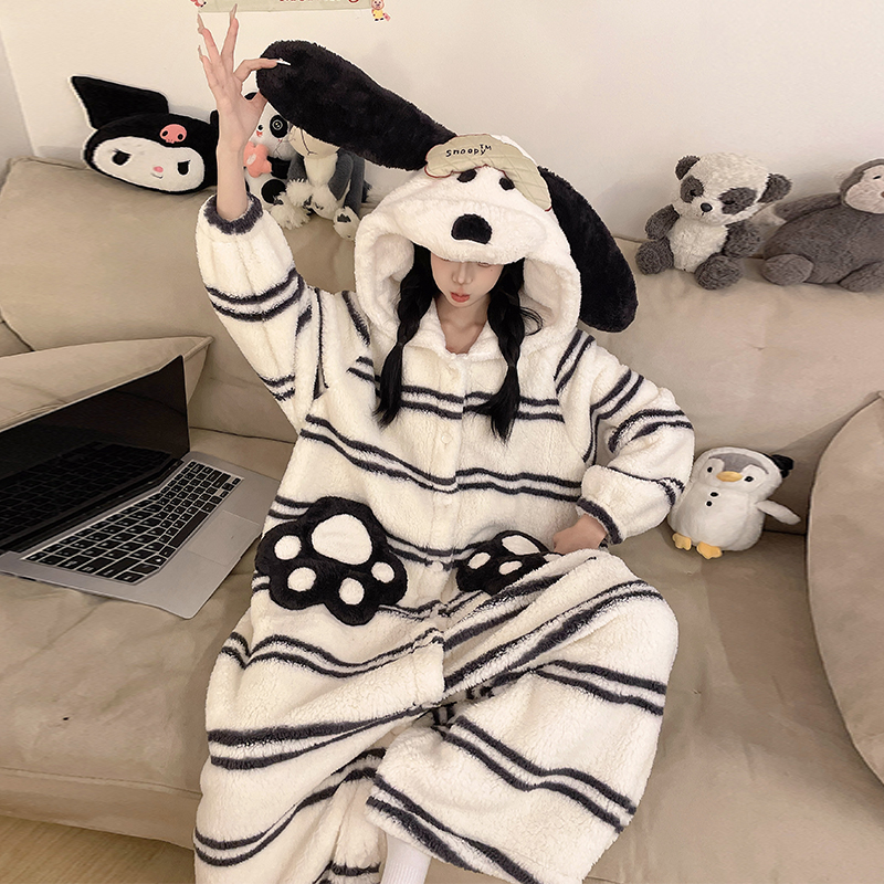 chiikawa珊瑚绒睡衣女新款 家居服乌萨奇法兰绒睡袍冬加厚浴袍 冬季
