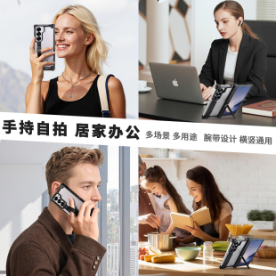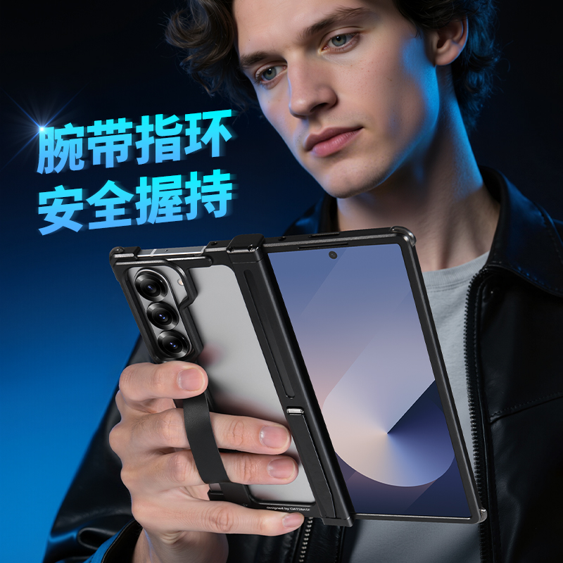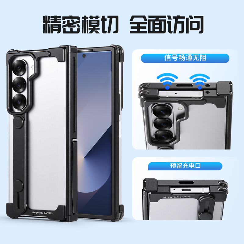 EARY适用三星Fold6手机壳金属镂空无边框折叠屏外壳GalaxyZ中轴铰链全包samsung保护套后壳腕带支架超薄新款