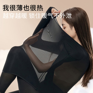 玻尿酸美肤衣套装 高弹保暖内衣抗静电抗起球圆领肌底衣 秋衣女长款