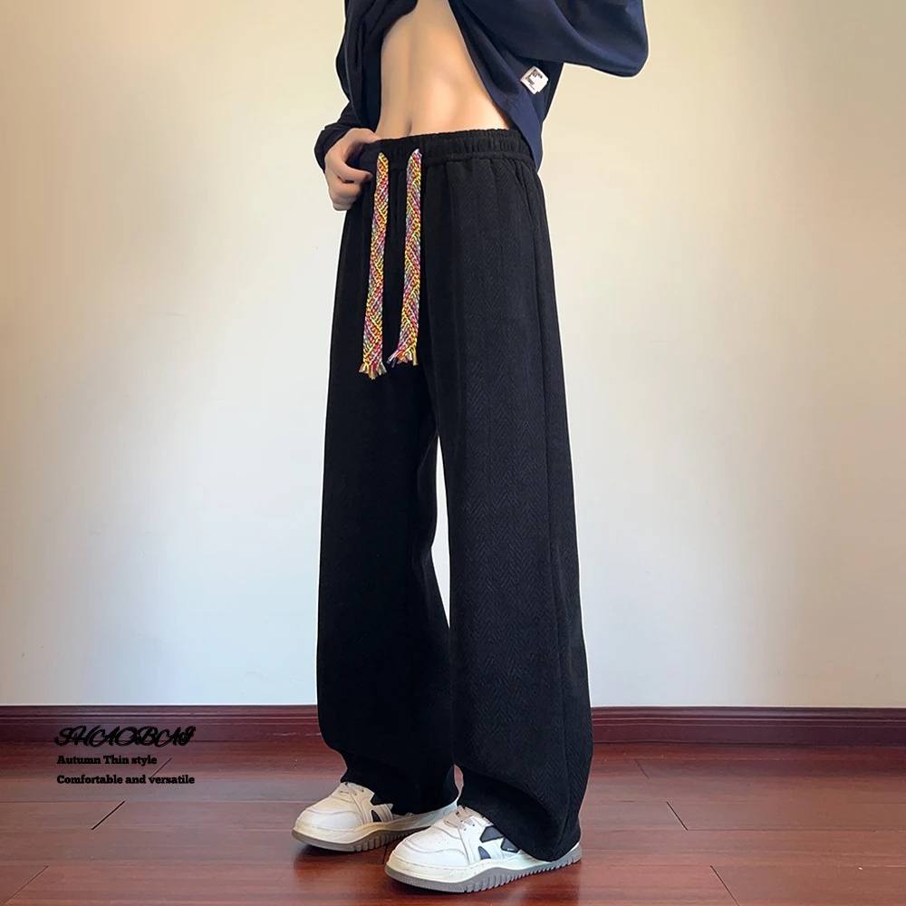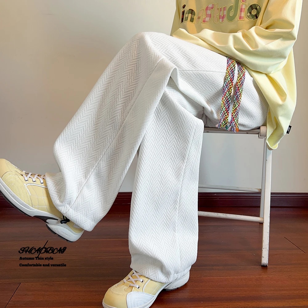 百搭宽松垂感阔腿裤 麦穗纹弯刀休闲裤 潮牌直筒长裤 新款 子男秋冬季