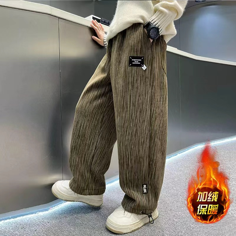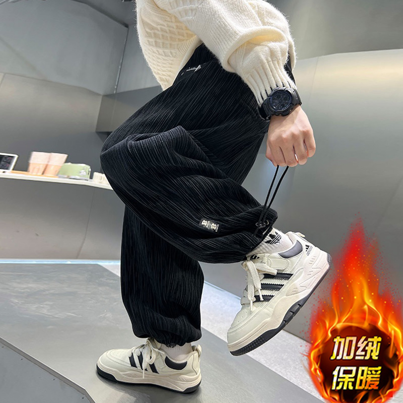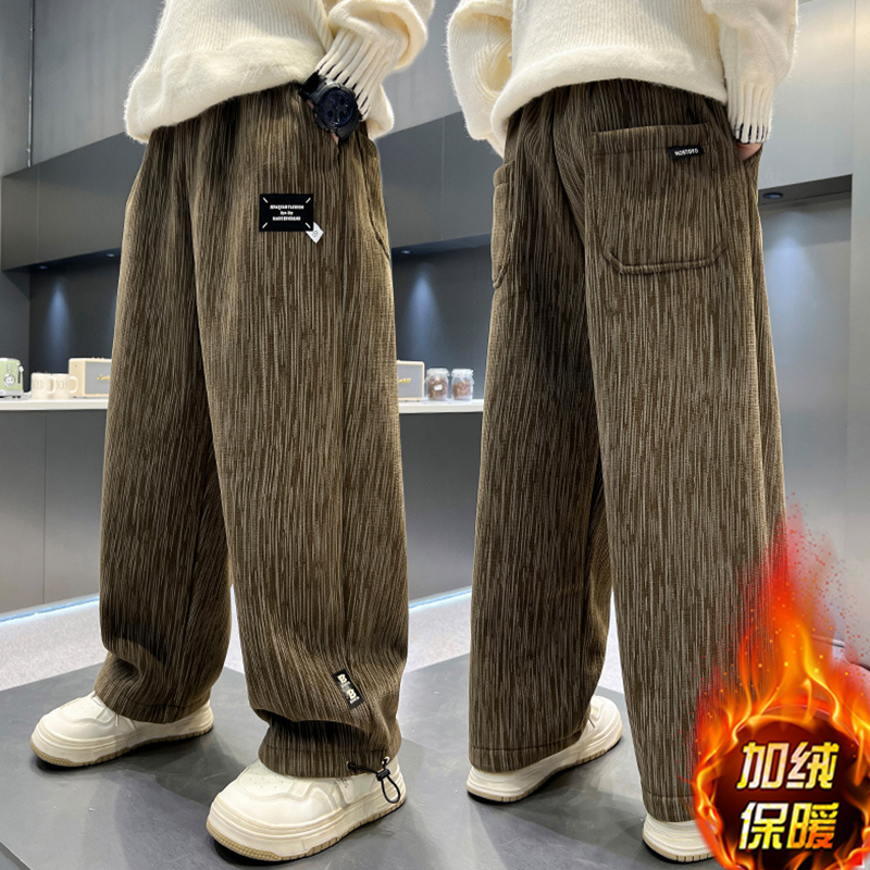 帅气潮童中大童休闲裤 男童条绒裤 加绒加厚一体绒直筒宽松2025新款