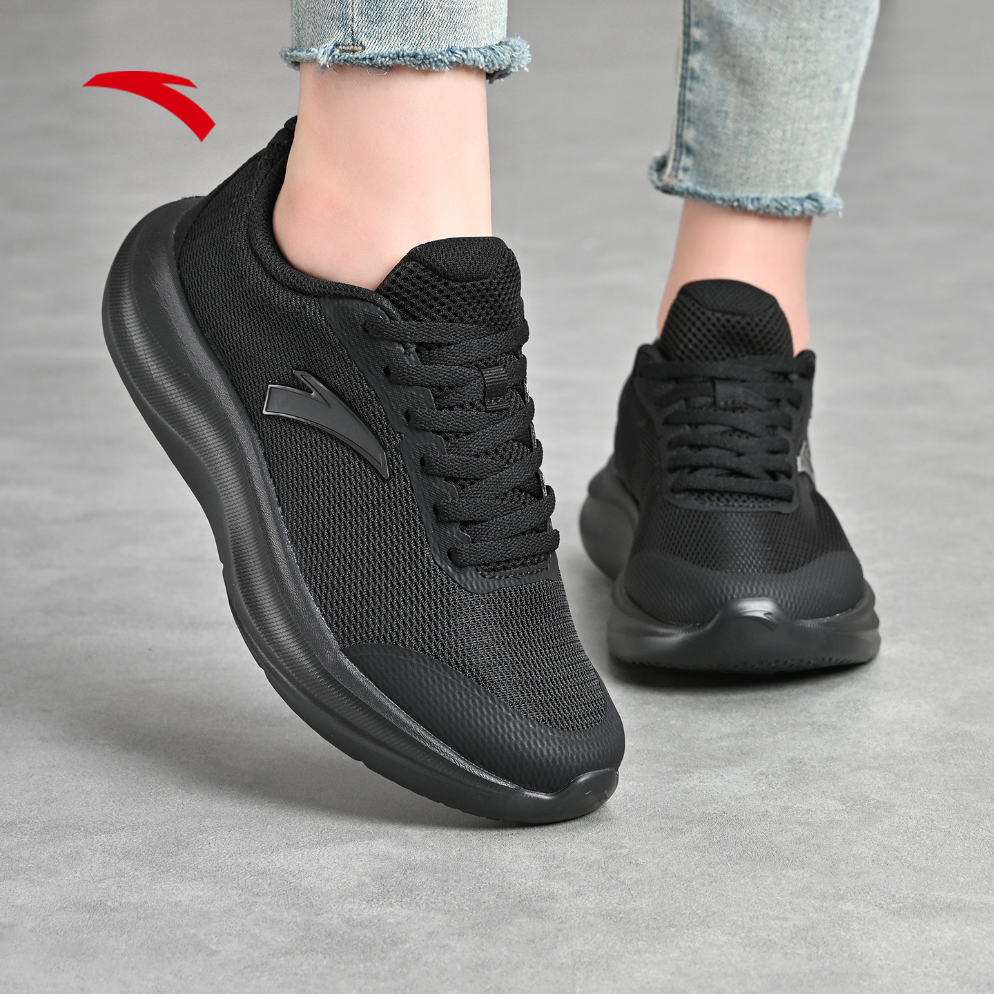 新款 2025秋季 网面轻便鞋 子厚底纯黑色运动跑步鞋 安踏跑鞋 女款 女鞋