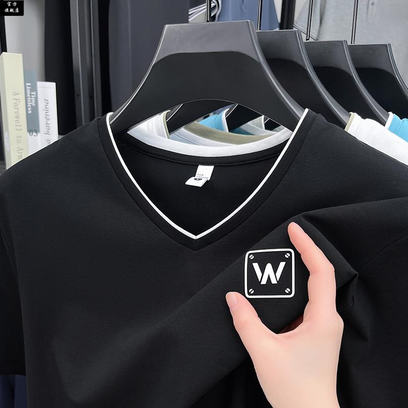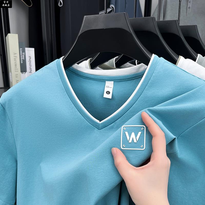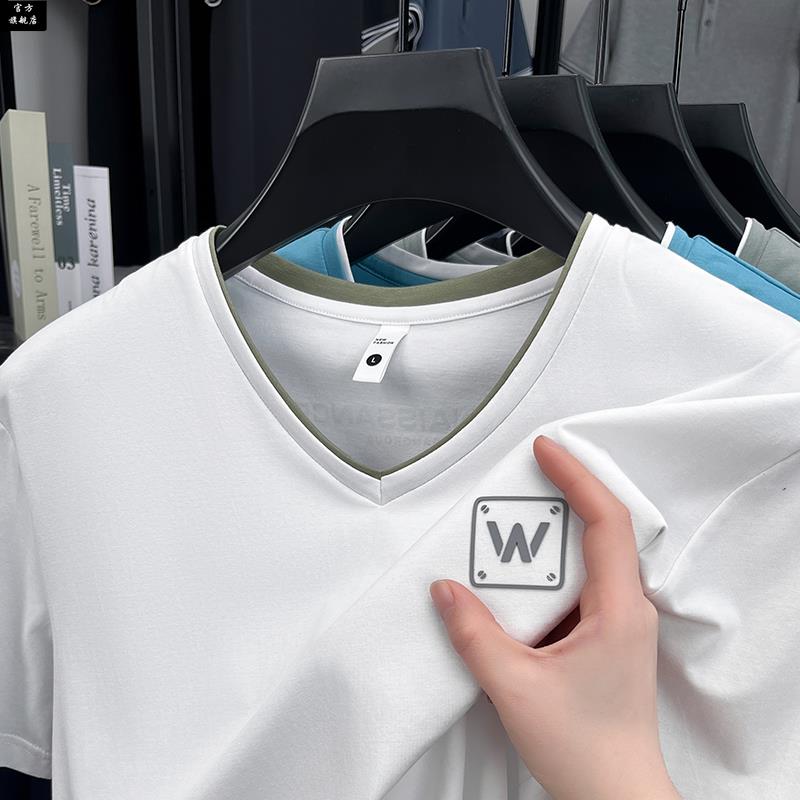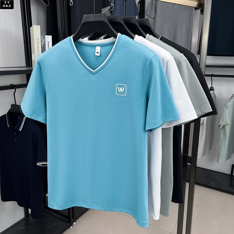 上衣青年鸡心领青年 体恤2025夏季 保罗官方93%棉短袖 t恤男V领半袖