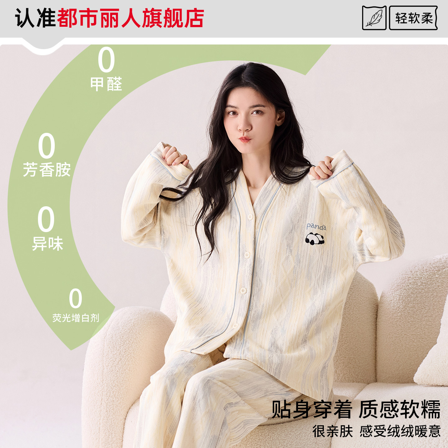都市丽人加厚夹层睡衣女秋冬2025新款 熊猫可外穿家居服 空气棉大码