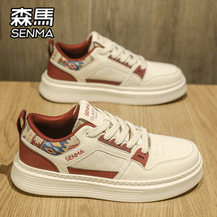 板鞋 秋冬休闲鞋 2025新款 男士 子男 红星轻便皮面小白鞋 鸿星尔克男鞋