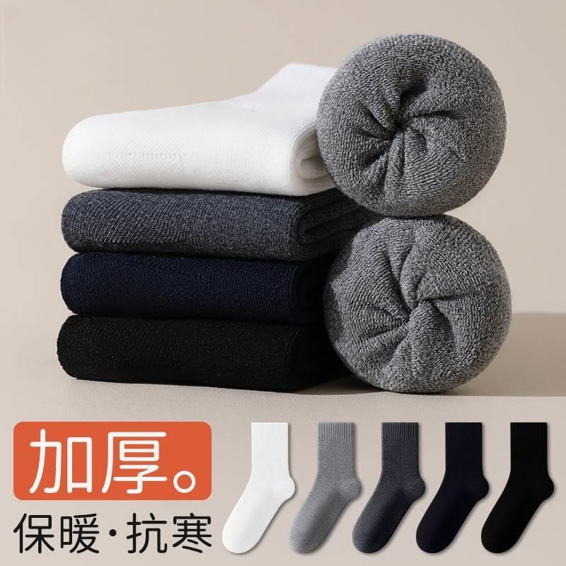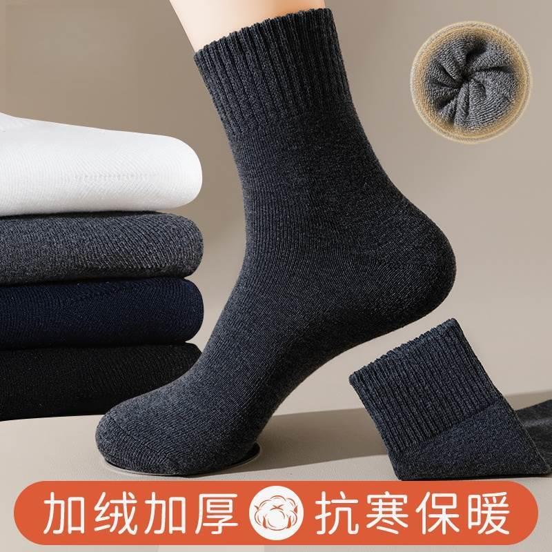 羊毛袜子男秋冬加厚加绒羊绒袜毛绒保暖中筒棉袜高筒长袜滑雪袜