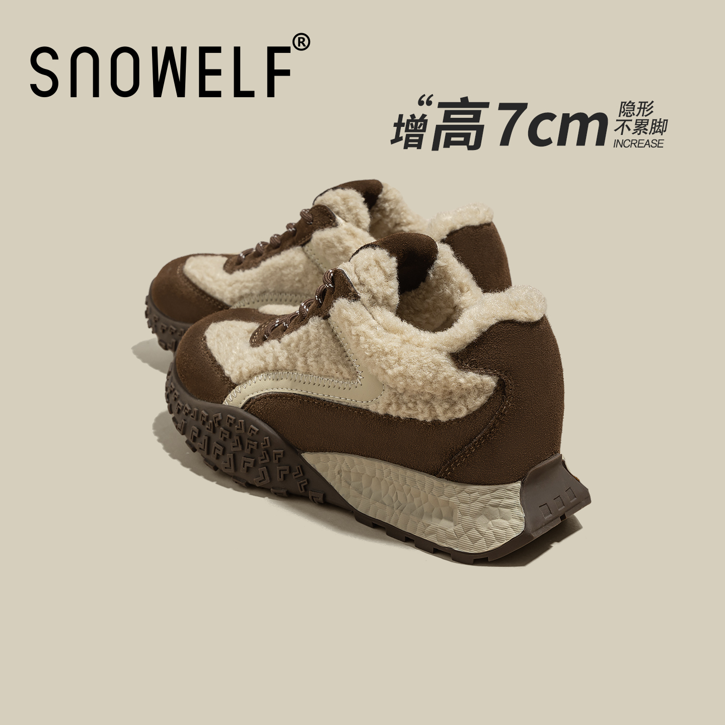 子百搭运动休闲鞋 真皮保暖内增高鞋 女2025秋冬新款 棕色厚底德训鞋